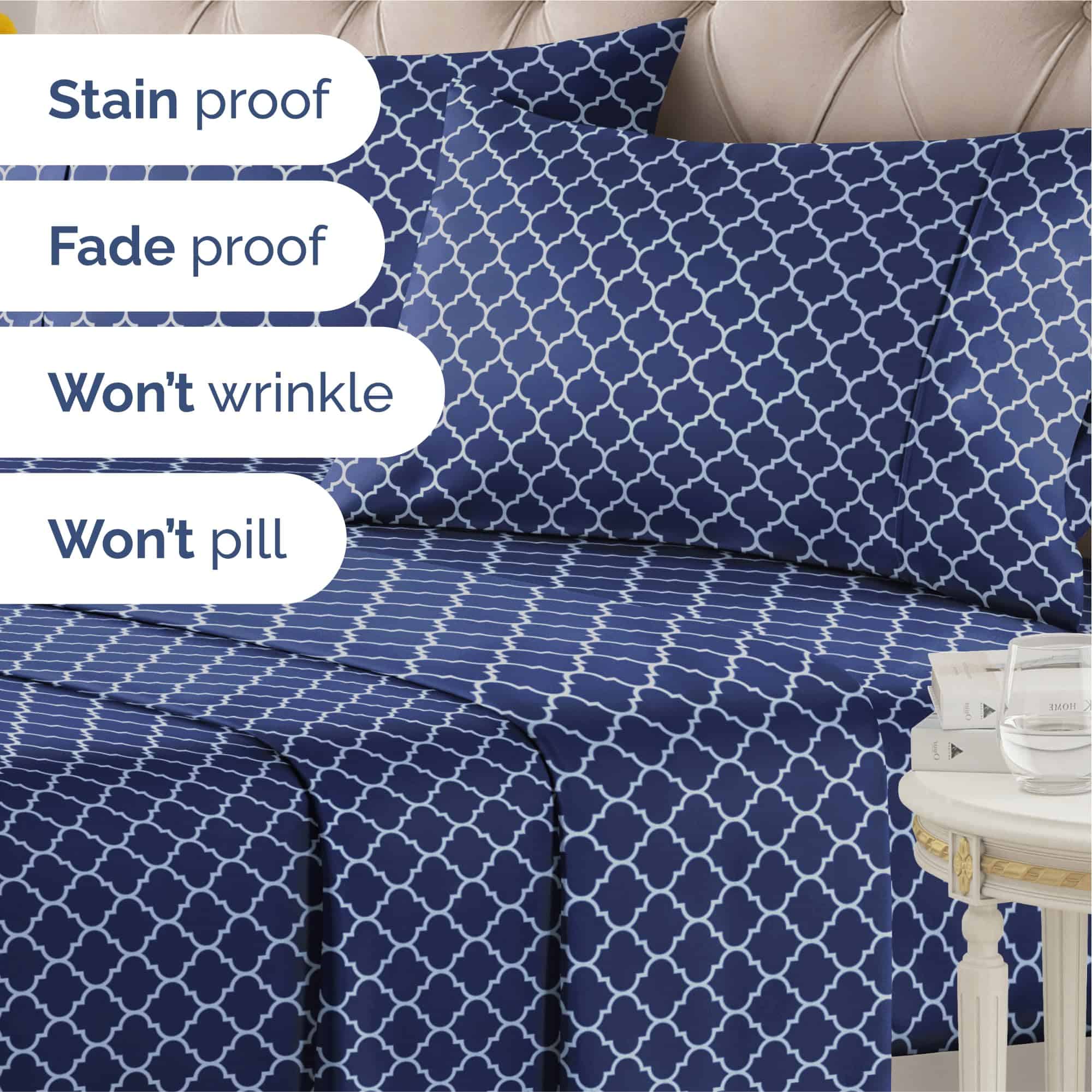 Sábanas de patrón azul real de hielo claro, hielo pálido, cielo, marina y azul rey para la ropa de cama de sábanas de algodón con patrón bolsillos profundos bambú hotel microfibra sábana de lujo egipcia enfriamiento conjunto de sábana y funda de almohada decoración de habitación hombres de lino premium orgánico elástico trébol