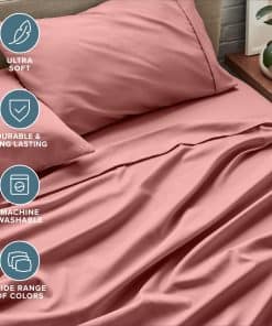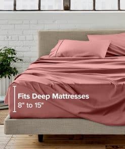 Bare Home Full XL Sheet Set – Luxury 1800 Ultra-Soft Microfiber Full Extra Long Bed Sheets – Double Brushed – Deep Pockets – Easy Fit – 4 Piece Set – Bedding Sheets & Pillowcases (Full XL, Dusty Rose)