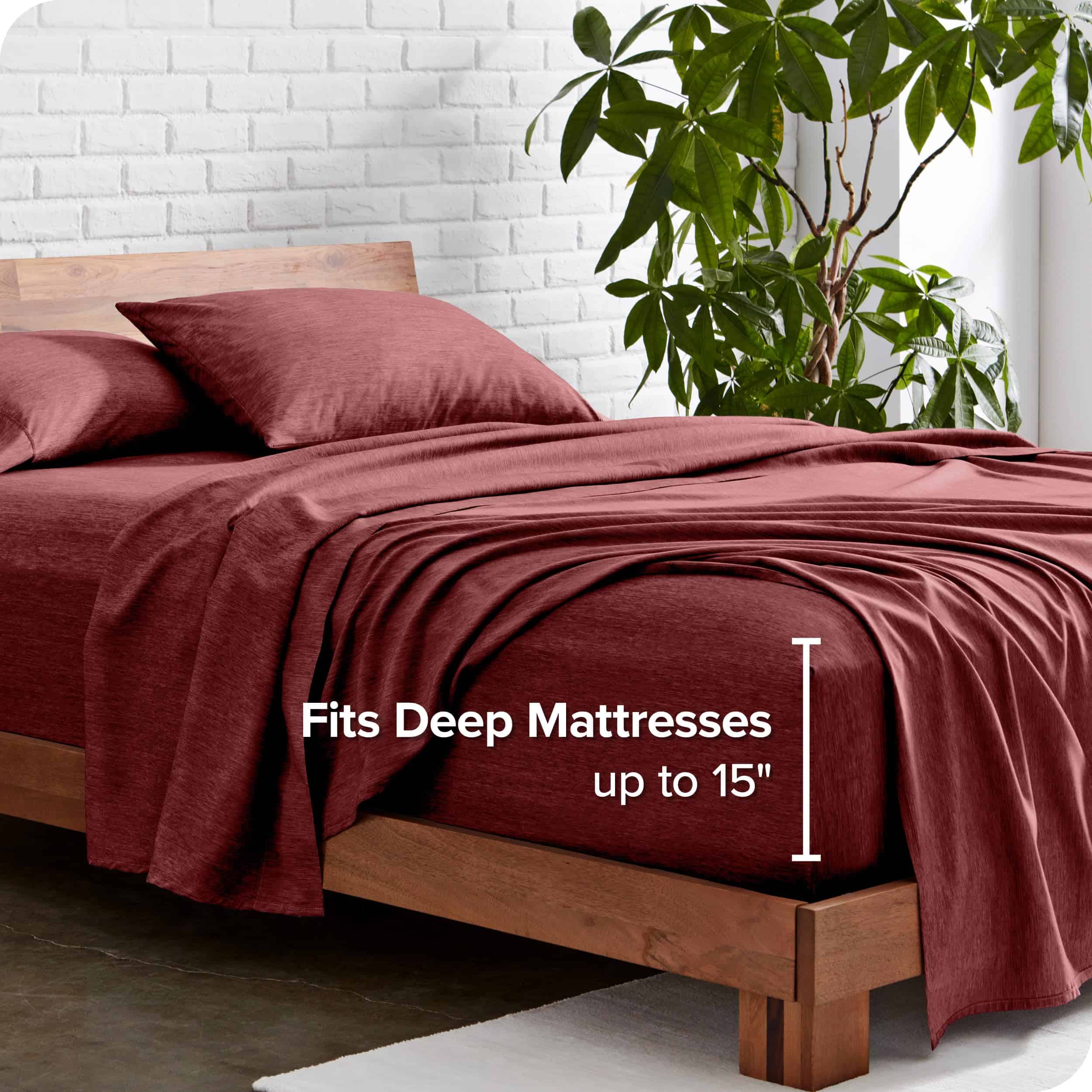 Bare Home Full XL Sheet Set – Luxury 1800 Ultra-Soft Microfiber Full Extra Long Sheets – Double Brushed – Deep Pockets – Easy Fit – 4 Piece Set – Bed Sheets (Full XL, Heathered Rose)