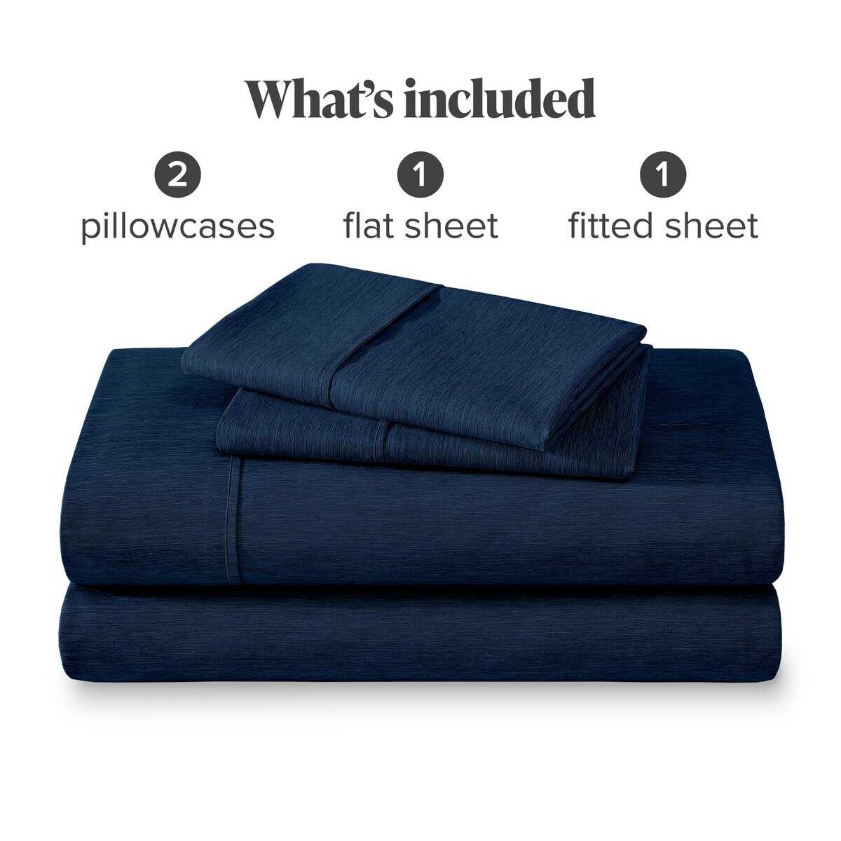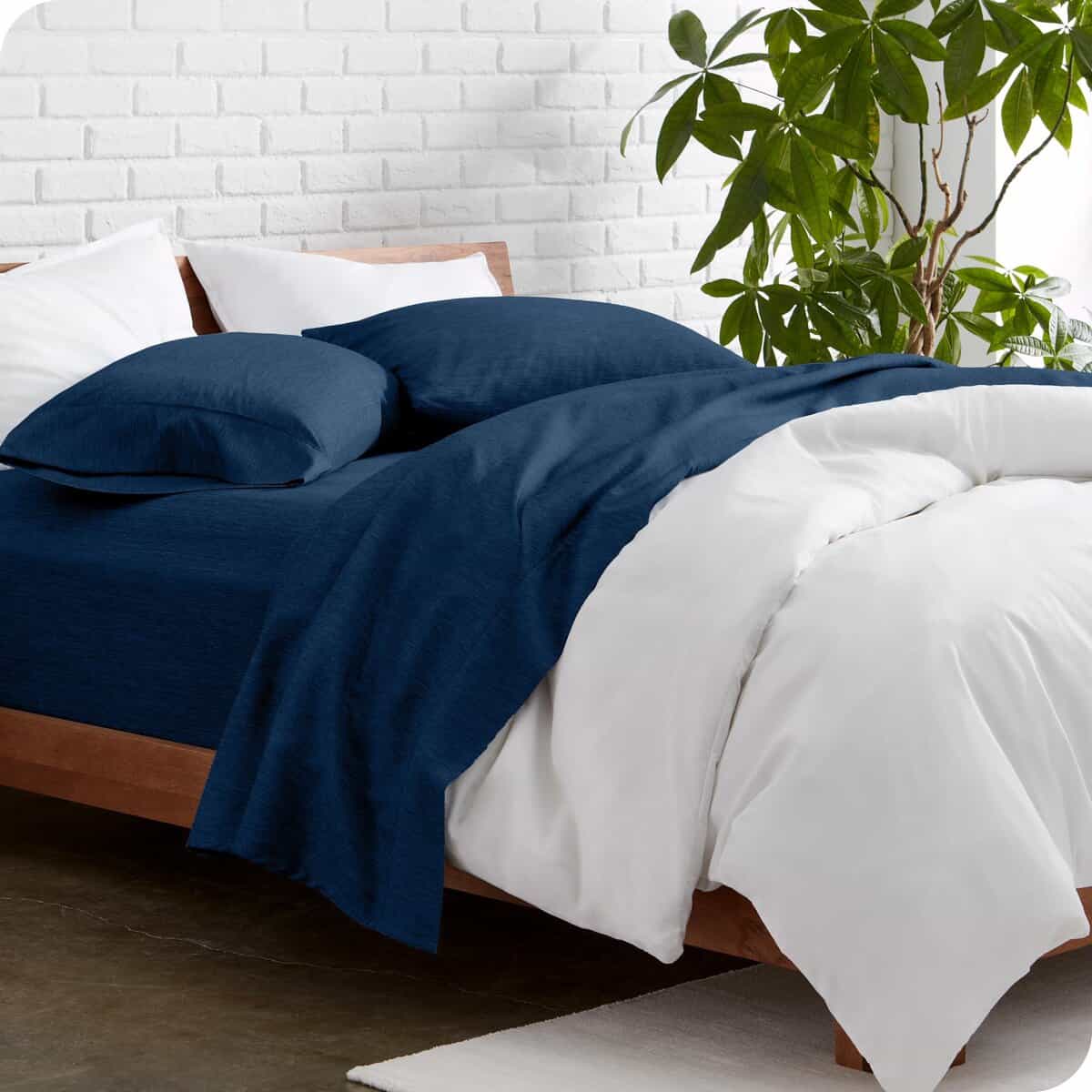 Bare Home Full XL Sheet Set – Luxury 1800 Ultra-Soft Microfiber Full Extra Long Sheets – Double Brushed – Deep Pockets – Easy Fit – 4 Piece Set – Bed Sheets (Full XL, Heathered Dark Blue)