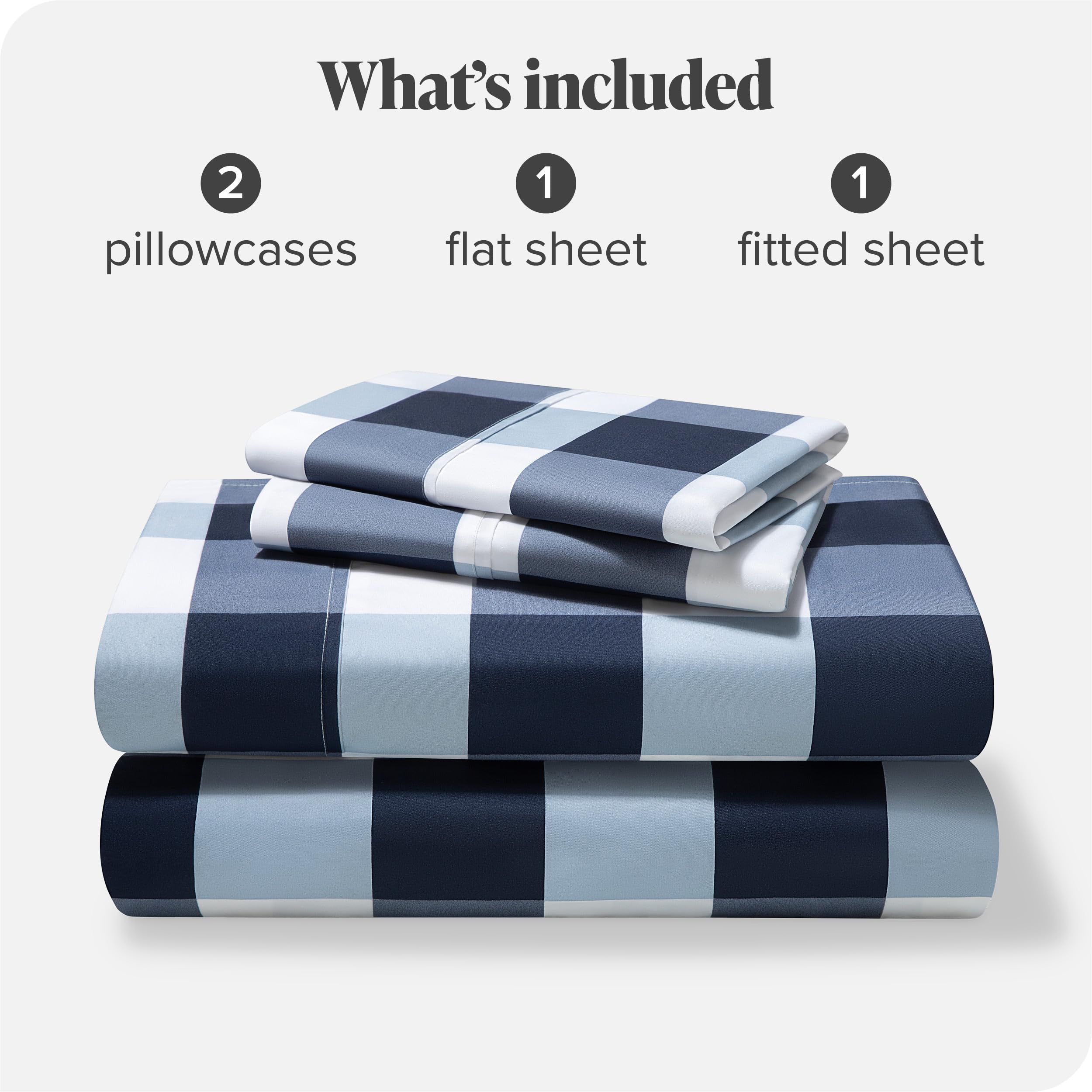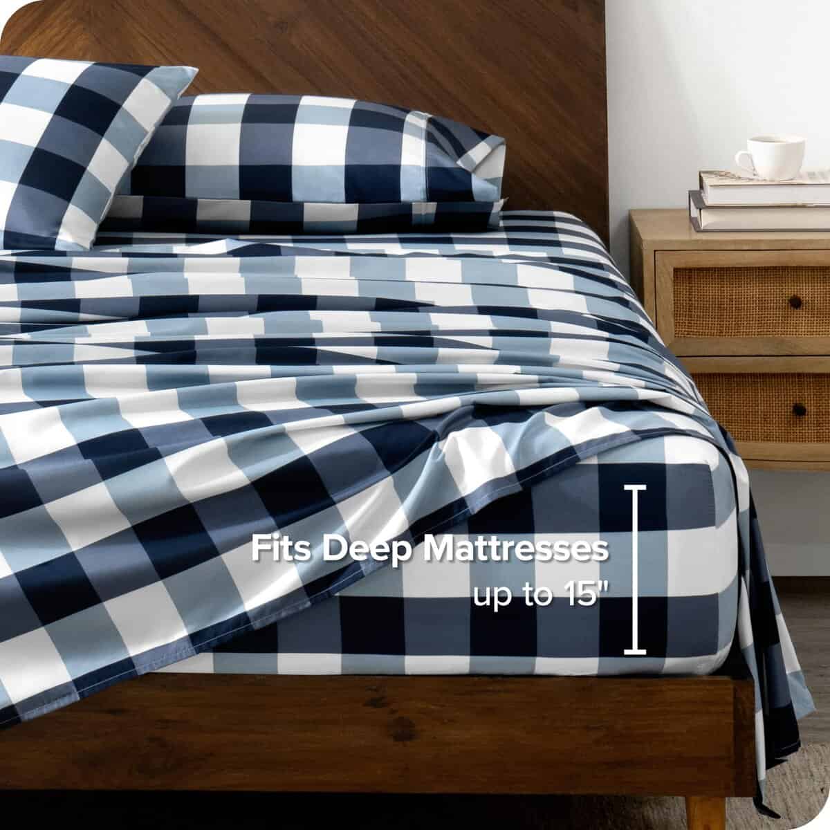 Juego de sábanas Bare Home Split Head Flex -Gingham Blue