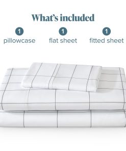 2. JUEGO DE SÁBANAS INDIVIDUALES DE 3 PIEZAS: 1 Sábana Individual Plana (66″ x 96″), 1 Funda de Almohada Estándar (20″ x 30″), 1 Sábana Ajustable Individual con elástico en todo el contorno (no solo en las esquinas) (39″ x 75″ x 15″ Bolsillo). Bolsillos extra profundos se sujetan y se ajustan a colchones de hasta 15″.