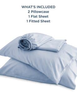 1. Ganador de premios: Este juego de sábanas de Bedsure ostenta con orgullo el título de NBC select EXPERT PICK 2024 para las mejores sábanas de bambú de mejor presupuesto, EL MÁS BUSCADO 2024 de NEW YORK POST para las mejores sábanas de enfriamiento de mejor presupuesto, y Forbes VETTED BEST OF 2024 para las mejores sábanas de bambú asequibles. 2. Fresco y seco toda la noche: Experimenta el máximo confort y lujo con estas sábanas, recibiendo la ‘Mejor Designación’ de Forbes Vetted. Hechas de bambú derivado de rayón, estas sábanas de enfriamiento absorben la humedad, transpirables y termorreguladoras, manteniéndote fresco todo el año. 3. Sedoso Suave: El juego de sábanas Bedsure Queen está hecho de bambú derivado de rayón con un tejido de sarga único, haciéndolo más resistente que el algodón y suave como la seda. Duerme como si estuvieras en una nube con nuestras cómodas sábanas. 4. Bolsillo profundo y fácil ajuste: Se incluye una sábana ajustable de bolsillo profundo en el juego y se ajusta a colchones de hasta 16 pulgadas de grosor. La banda elástica alrededor del borde garantiza un ajuste seguro que no se moverá mientras duermes. Las fundas de almohada con cierre de sobre sedoso incluidas reducen la fricción en tu cabello, manteniendo tus mechones suaves y saludables. 5. Fácil de cuidar: Estas sábanas de Bedsure son certificadas con el estándar OEKO-TEX 100 para altos estándares de seguridad. Simplemente lávalas a máquina en agua fría en un ciclo suave para una restauración como nueva, no uses blanqueador y suavizante de telas