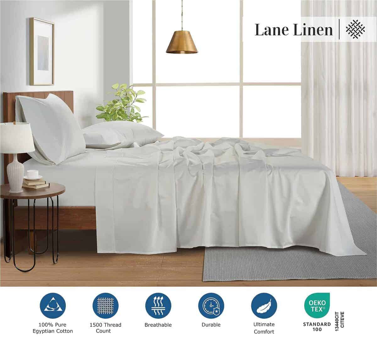 Juego de Sábanas Blancas 100% Algodón Egipcio LANE LINEN