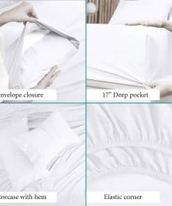 Juego completo de sábanas de 4 piezas Bunny’s Home: ¡Dale a tu cama un cambio completo con este juego de sábanas de lujo! El juego incluye una sábana bajera ajustable, una sábana plana y dos fundas de almohada para una apariencia elegante y cómoda. Hechas de algodón egipcio de 1000 hilos, estas sábanas gemelas ofrecen una suavidad excepcional y durabilidad a largo plazo. El diseño de bolsillo profundo de 17 pulgadas se adapta perfectamente a colchones más gruesos y cubrecolchones, asegurando un ajuste seguro durante toda la noche. La suave tela de satén es fresca al tacto y absorbe la humedad, perfecta para aquellos que buscan un sueño fresco y cómodo. Además, estas sábanas son fáciles de cuidar, se pueden lavar a máquina y se mantienen suaves y coloridas incluso después de múltiples lavados. Resistentes a la decoloración, al apelotonamiento y a las arrugas, nuestras sábanas mantienen su aspecto y sensación de nuevas, garantizando un descanso de calidad noche tras noche.