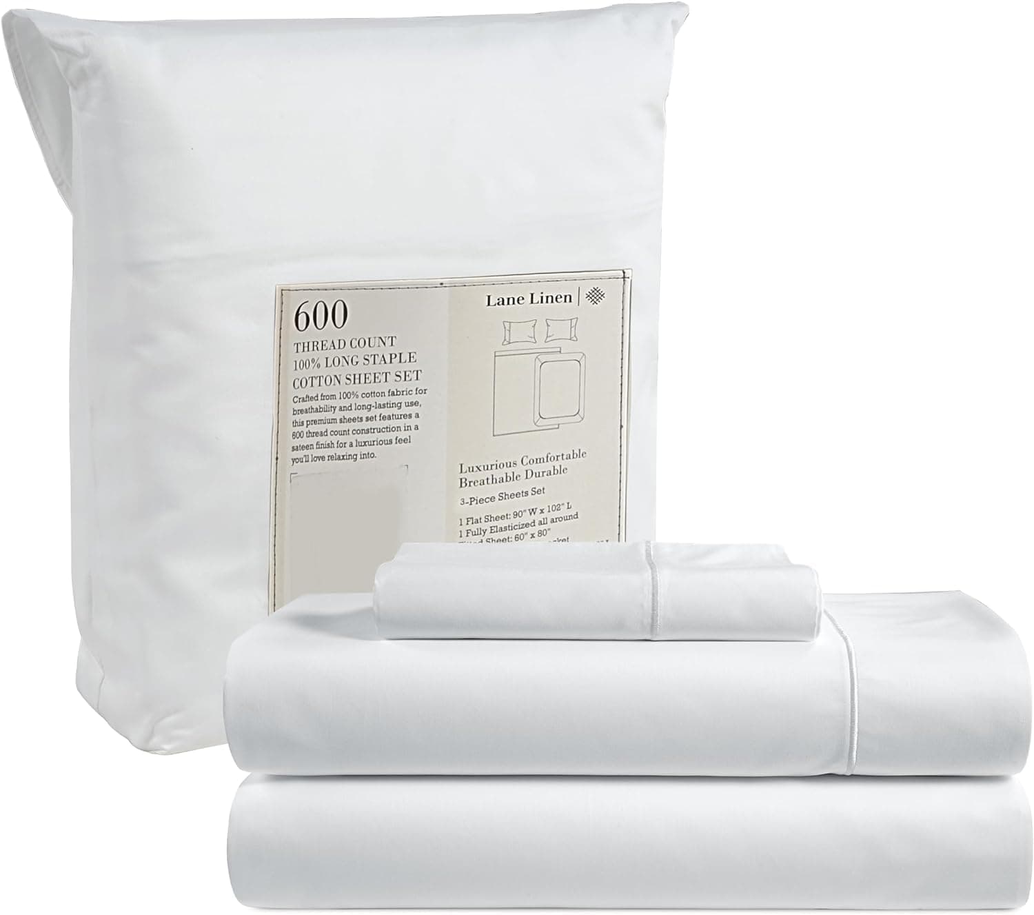Las sábanas de 600 hilos de Lane Linen son un tesoro para su cama. Hechas de 100% algodón mercerizado, estas sábanas blancas para cama individual son suaves al tacto y no se comparan a ninguna otra. Con un acabado sedoso tipo satén y un tejido suave, estas sábanas hacen que cada noche de sueño sea una experiencia de hotel de lujo en la comodidad de su hogar.