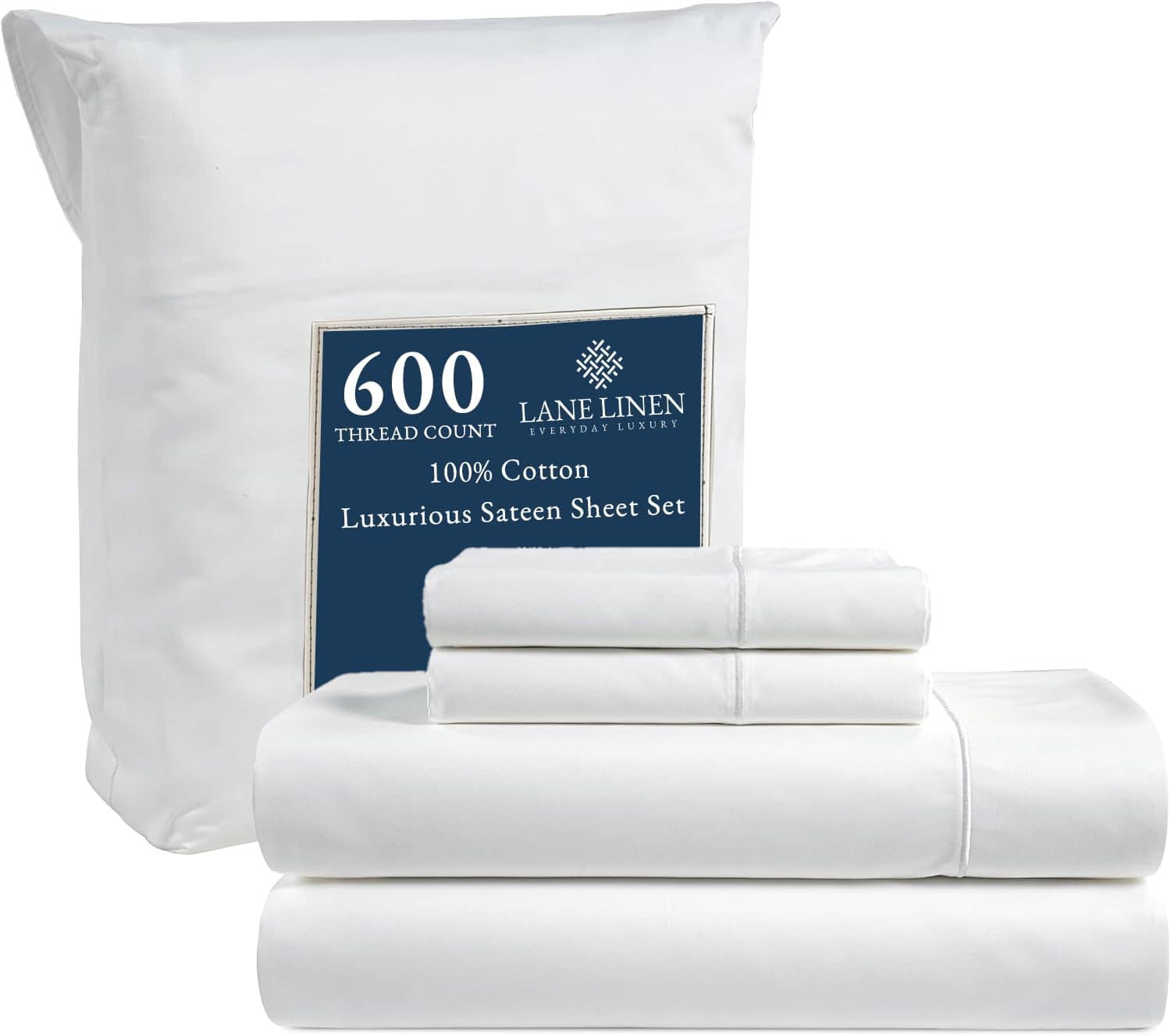 1. JUEGO DE SÁBANAS DE ALTA CANTIDAD DE HILOS PARA CAMA QUEEN: Las sábanas de 600 hilos de Lane Linen son de una calidad excepcional y han estado satisfaciendo a nuestros clientes durante años. Estas sábanas de alta cantidad de hilos están tejidas de forma muy apretada, lo que hace que el juego de sábanas sea extra suave, extra duradero, fácil de cuidar, resistente al desgaste y proporciona una comodidad excepcional durante todo el año. Todas nuestras sábanas de algodón están certificadas estándar 100 por OEKO TEX. 2. JUEGO DE SÁBANAS Y FUNDAS PARA ALMOHADA DE 4 PIEZAS DE ALGODÓN: Estos juegos de sábanas incluyen – 1 sábana ajustable Queen (60″ x 80″ + 15″ bolsillos profundos), 1 sábana plana Queen size (90″ x 102″) y 2 fundas de almohada estándar (20″ x 30″). 3. JUEGO DE SÁBANAS DE COLECCIÓN DE HOTEL: Nuestro juego de sábanas presenta detalles de dobladillo exquisitos que añaden un toque de lujo a su ropa de cama. Estas sábanas vienen en una amplia gama de colores y tamaños, por lo que puede elegir el juego perfecto para complementar cualquier decoración de dormitorio. Estas sábanas también son extremadamente transpirables y permiten una buena circulación de aire, lo que ayuda a regular la temperatura corporal y garantizar un sueño cómodo durante todo el año. 4. SOLUCIÓN DE REGALO PERFECTA: Nuestros juegos de sábanas de 600 hilos han sido apreciados por todos, lo que los convierte en un regalo ideal para sus seres queridos. También viene empaquetado en una atractiva y única bolsa de algodón reutilizable auténtica y ecológica. La satisfacción del cliente es nuestra principal prioridad, así que si tiene algún problema con la calidad del producto, no dude en comunicarse con nosotros y nos aseguraremos de que le proporcionamos la mejor solución posible. 5. EXTREMADAMENTE FÁCIL DE CUIDAR: Nuestras sábanas son lavables a máquina y también se pueden secar a máquina con facilidad. Nuestras sábanas también son resistentes a las arrugas y a la decoloración, lo que garantiza que se vean y se sientan geniales incluso después de varios lavados. Evite usar suavizantes de telas fuertes y detergentes agresivos, ya que se sabe que reducen la longevidad del producto.