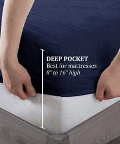 Nuestro juego de sábanas queen está diseñado para adaptarse perfectamente a colchones de tamaño queen, incluyendo aquellos con profundidad adicional. Las sábanas queen de bolsillo profundo, con una profundidad de bolsillo de 16 pulgadas y elástico en todo el contorno, aseguran un ajuste seguro y ceñido, evitando cualquier deslizamiento o agrupamiento durante la noche. Di adiós a la necesidad constante de ajustes y disfruta de una superficie suave y sin arrugas cada vez que hagas tu cama.