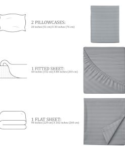 Este completo juego de sábanas queen incluye todo lo necesario para una renovación completa de la cama: una sábana plana, una sábana ajustable tamaño queen y dos fundas de almohada queen a juego (juego de 2). El diseño elegante y cohesionado de este set complementa fácilmente cualquier decoración de dormitorio, desde estilos modernos hasta tradicionales.