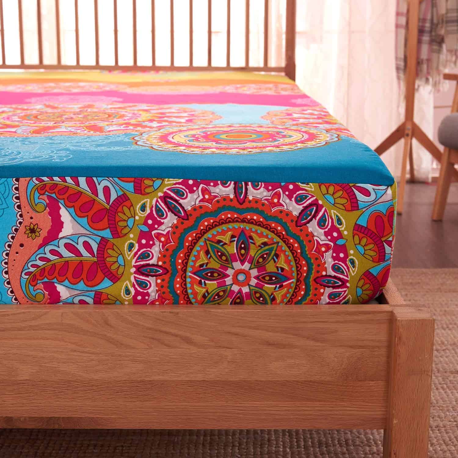 Juego de Sábanas Bohemias Retro Pangzi, 1 Sábana Ajustable,