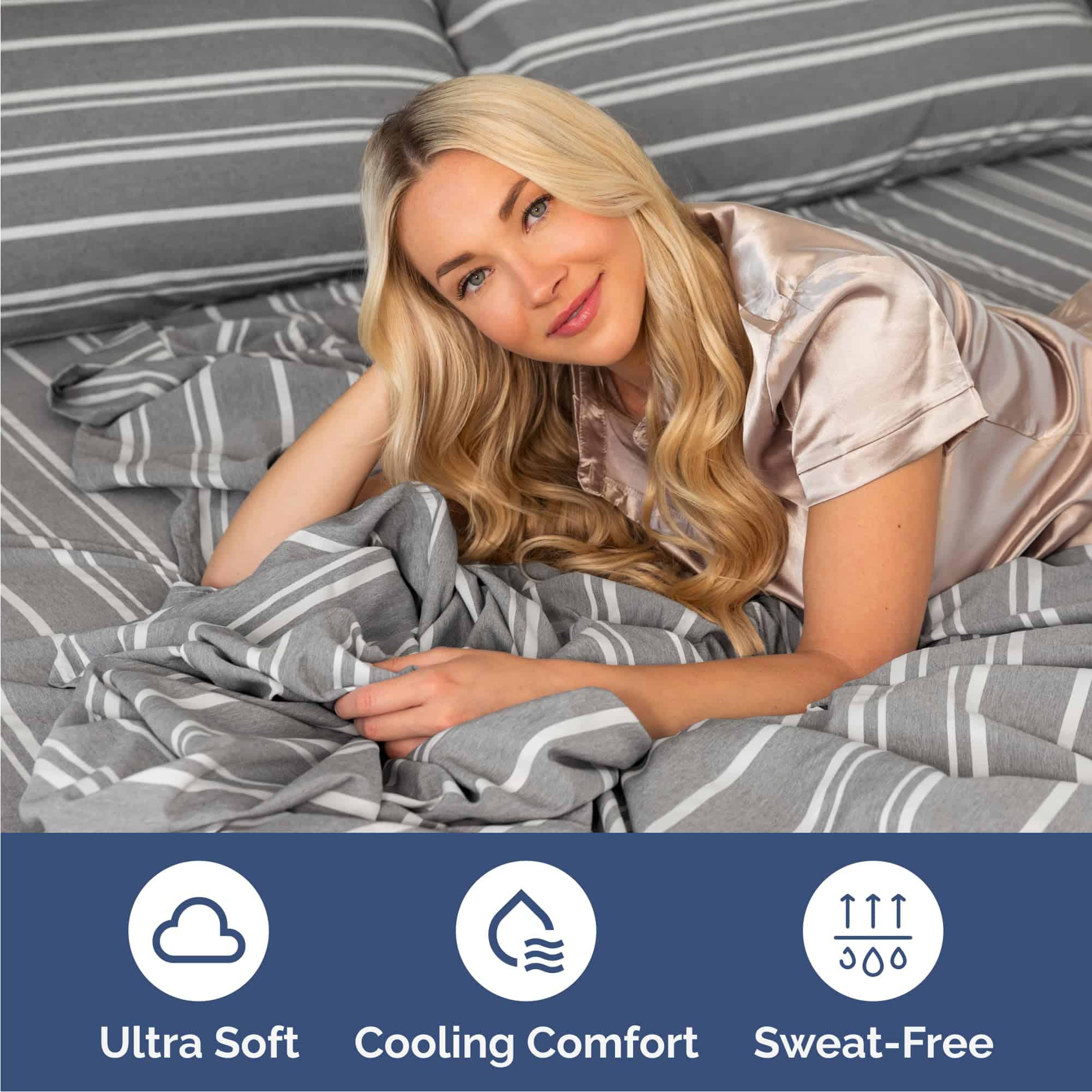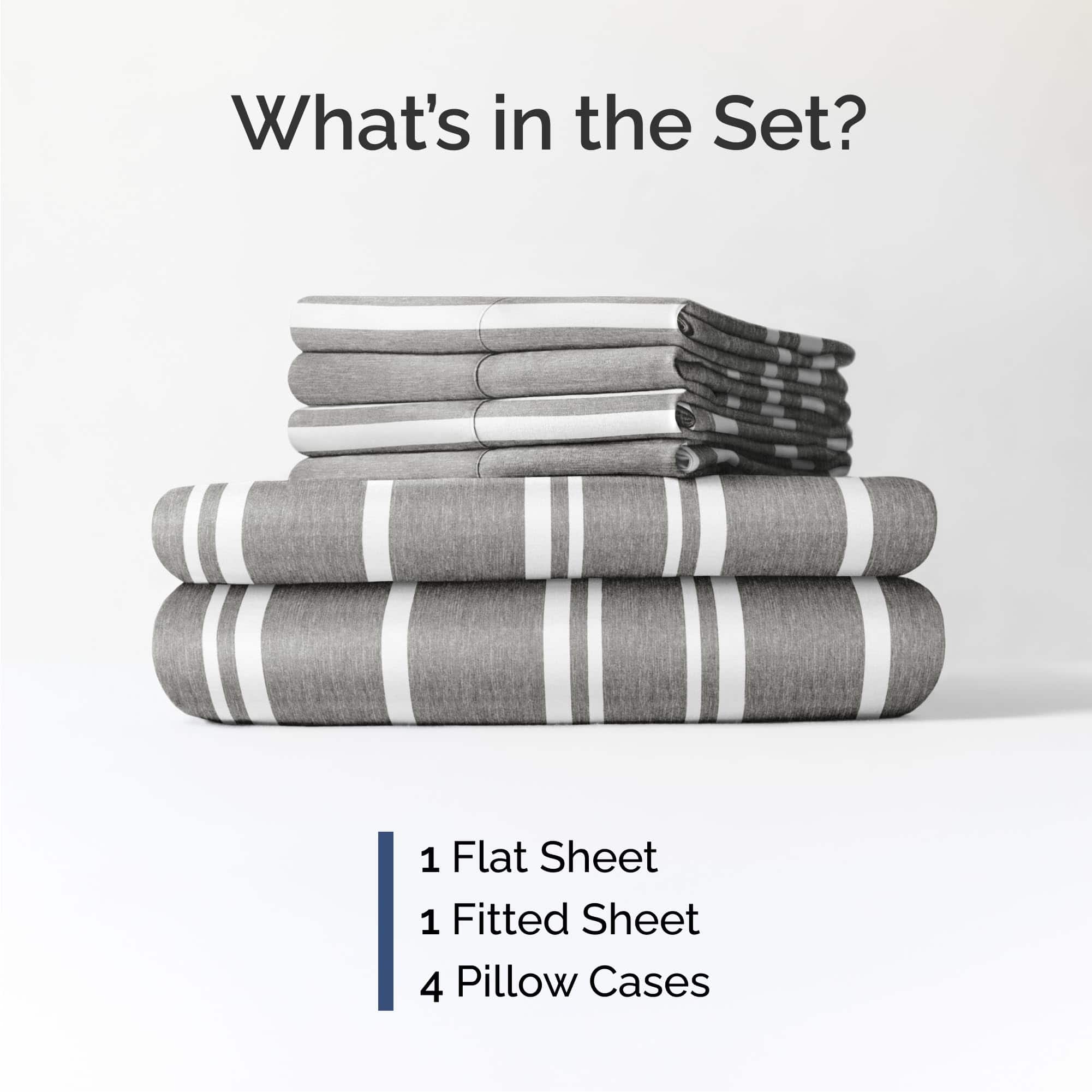 Juego de sábanas Cal King de 6 piezas – Cómodas, -Gris Rayas
