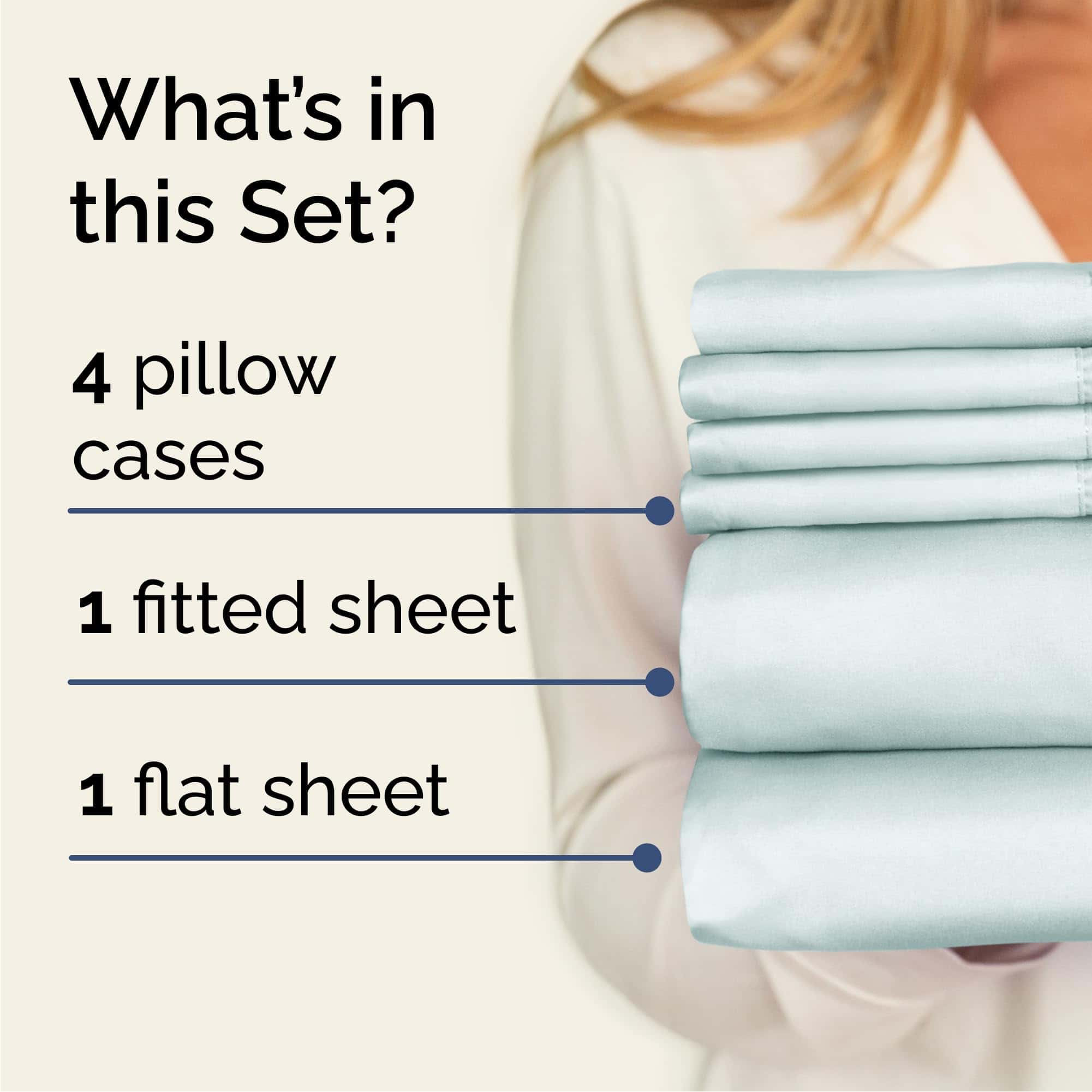 Juego de Sábanas Cal King de 6 Piezas – Cómodo, -Azul Hielo