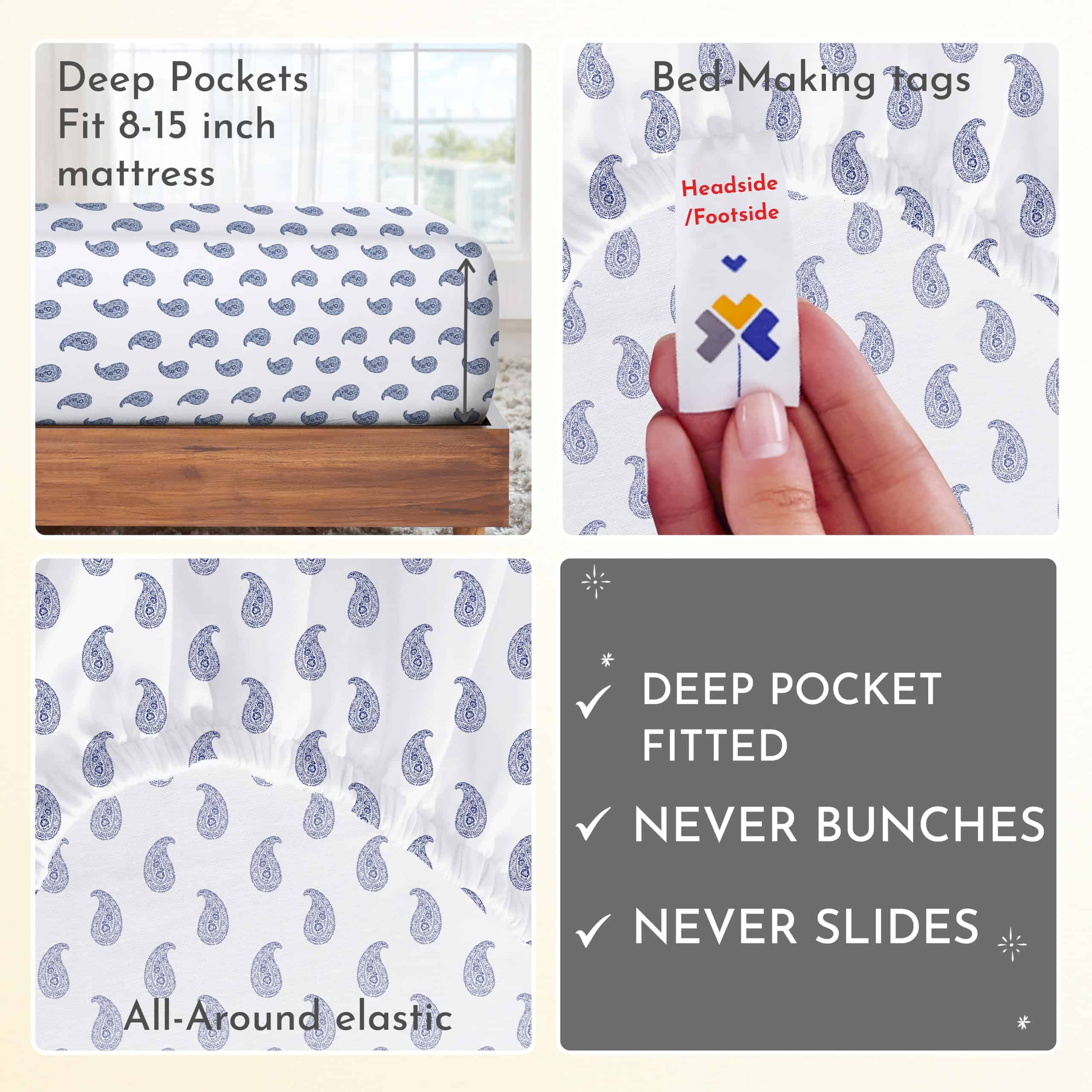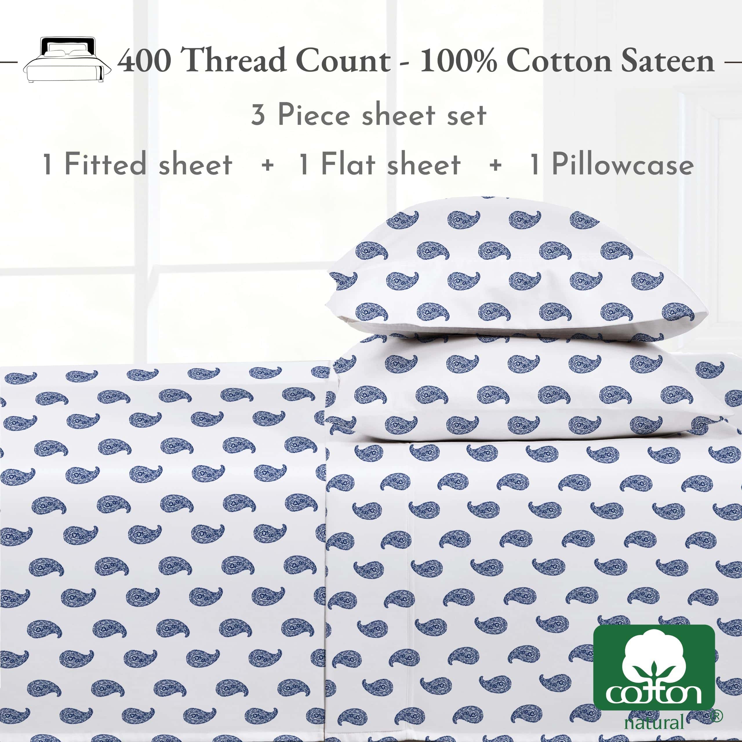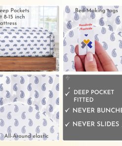 2. Ajuste perfecto: Nuestros juegos de sábanas de 3 piezas están expertamente confeccionados con costuras de calidad. La sábana ajustable tiene bolsillos profundos de 15 pulgadas, por lo que se adaptará a colchones de 8-15 pulgadas de profundidad. El elástico fuerte asegura que las sábanas no se salgan ni se aflojen con el tiempo. Nuestra sábana ajustable también cuenta con un indicador de lado de cabecera/piecera para una experiencia de hacer la cama sin problemas. Añade un toque de estilo a tu dormitorio con nuestra selección de sábanas de algodón paisley. 3. Calidad y durabilidad de la impresión: Nuestro tejido de sarga 100% algodón y 400 hilos está tejido de forma ajustada para ser un lienzo perfecto para un diseño claro y preciso. Los colores son brillantes, equilibrados y elegantes, nunca demasiado abrumadores. Los estampados se realizan con tintes de alta calidad que no se desvanecen ni destiñen con el lavado, garantizando que tu motivo favorito se mantenga vibrante y hermoso durante años. Con nuestro juego de sábanas Twin XL, puedes disfrutar de una experiencia de sueño lujosa, cómoda y elegante. 4. Personaliza tu dormitorio: Con una variedad de opciones, desde flores hasta rayas, puedes coordinar y cambiar fácilmente tu ropa de cama según tu estado de ánimo y preferencias. No más conformarse con sábanas de un solo color aburridas. Hemos tomado fotos profesionales para mostrar el estampado, pero si por alguna razón no coinciden con tu decoración o tu visión, puedes devolverlas fácilmente. Consigue la ropa de cama perfecta para tu dormitorio con nuestra variedad de opciones. 5. Te encantarán estas sábanas: El Wall Street Journal confirma que «Las sábanas de algodón de California Design Den son tan suaves y bien hechas como otras sábanas de algodón que cuestan más de tres veces su precio». Resolvemos cualquier problema de forma rápida dentro de 1 día laborable para ofrecer una experiencia encantadora a nuestros clientes.