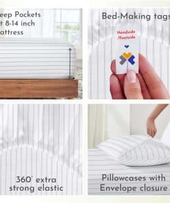 Descubre la combinación perfecta de estilo y comodidad con nuestros juegos de sábanas estampadas. Si buscas añadir un toque de personalidad a tu ropa de cama, ¡nuestros juegos de sábanas estampadas de algodón satén al 100% son la solución perfecta! Estas sábanas no solo son increíblemente cómodas, sino que los estampados claros y bien definidos te permiten expresar tu estilo personal de una manera sutil pero impactante. Creemos que la ropa de cama debe ser tanto elegante como práctica, por eso nuestros juegos de sábanas estampadas cumplen con los más altos estándares de calidad y durabilidad. El lujoso y suave tejido natural proporciona un sueño cómodo, mientras que los colores vibrantes y duraderos resisten la decoloración con los lavados. Elaborados con el mejor algodón satén, nuestros juegos de sábanas estampadas cuentan con una calidad de impresión excepcional. El tejido de tela tejida ajustada crea un lienzo ideal para impresiones hermosas y equilibradas sin errores de impresión o patrones llamativos. Nuestros juegos de sábanas estampadas de 4 piezas para Queen, King y California King vienen con bolsillos extra profundos de 14 pulgadas, que se adaptan a colchones de 8 a 14 pulgadas de profundidad. Los juegos de sábanas estampadas de 3 piezas para Twin y Twin XL vienen con bolsillos de 12 pulgadas de profundidad, adaptándose a colchones de 8 a 12 pulgadas de profundidad. El elástico fuerte y seguro asegura que tus sábanas permanezcan en su lugar durante toda la noche, manteniendo su ajuste incluso después de años de uso. Eleva tu ropa de cama con nuestras sábanas estampadas, que presentan una variedad de divertidos estampados florales y de rayas. Muestra tu personalidad y añade un toque de color a tu dormitorio con estos elegantes y prácticos juegos de sábanas.