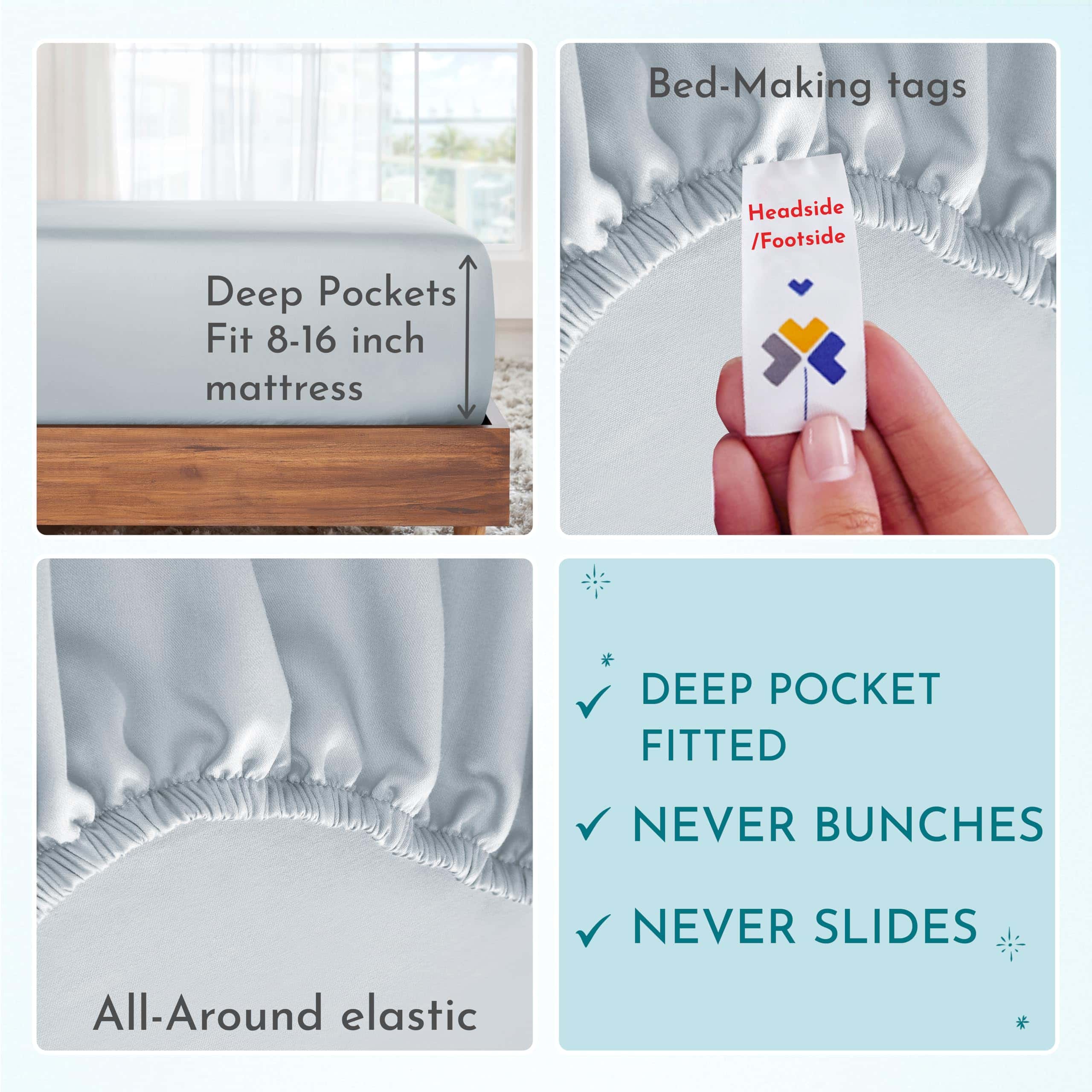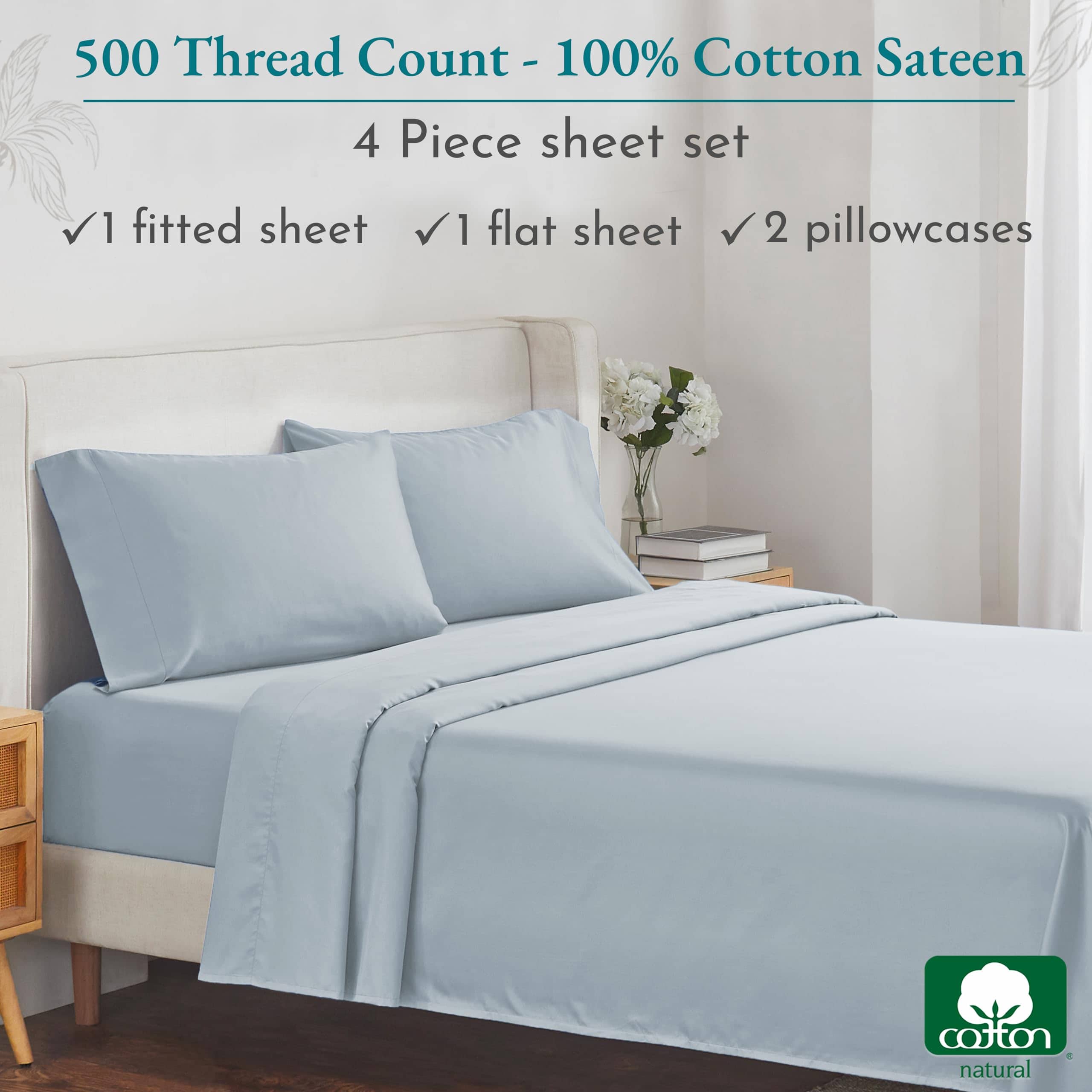 Las sábanas de California Design Den están diseñadas para brindarte la máxima comodidad y calidad premium. Hechas de fibras de algodón de filamento largo extra, estas sábanas de 500 hilos son suaves y sedosas al tacto, lo que te permite disfrutar de una sensación lujosa noche tras noche. El juego de sábanas King en Azul Claro incluye una sábana bajera ajustable con bolsillos profundos para un ajuste perfecto incluso en colchones más gruesos, una sábana plana generosamente dimensionada y dos fundas de almohada King para completar el look de tu cama. Además de ser suaves y cómodas, las sábanas de California Design Den son naturalmente frescas, lo que las convierte en la mejor opción para aquellos con piel sensible. Estas sábanas están hechas con los mejores materiales y son duraderas y fáciles de mantener. Con cada lavado, las sábanas se vuelven más suaves y cómodas, lo que garantiza que tendrás una noche de sueño reparador en ellas. Todos nuestros productos están certificados por OEKO-TEX, lo que garantiza que se fabrican de manera ética y sostenible. Elige la calidad y el confort con las sábanas de California Design Den.