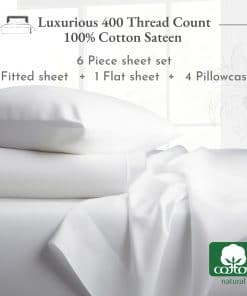 Experimenta el algodón 100% puro, de larga fibra más suave, fresco y transpirable con nuestro juego de sábanas de algodón de 400 hilos y tejido de satén para enfriar. Promete el ajuste perfecto para camas tamaño full con sus sábanas ajustables de bolsillo profundo y etiquetas inteligentes en la cabecera y los pies para facilitar la cama. Estas sábanas de gama alta con tejido de satén de hotel te ofrecen la mayor comodidad sin igual. Son fáciles de cuidar, ya que se pueden lavar fácilmente a máquina. Además, se vuelven más suaves con cada lavado y no se encogen, hacen bolas ni decoloran. Certificadas como Estándar 100 por Oekotex libres de sustancias nocivas. En 2022 y 2023, donamos más de 22,000 piezas de ropa de cama a organizaciones benéficas locales en los EE.UU. No utilizamos plástico en nuestro embalaje y nuestras sábanas son producidas en nuestra fábrica familiar en India. Cada pieza se inspecciona para garantizar la calidad, y prometemos reemplazar cualquier producto defectuoso sin costo alguno.