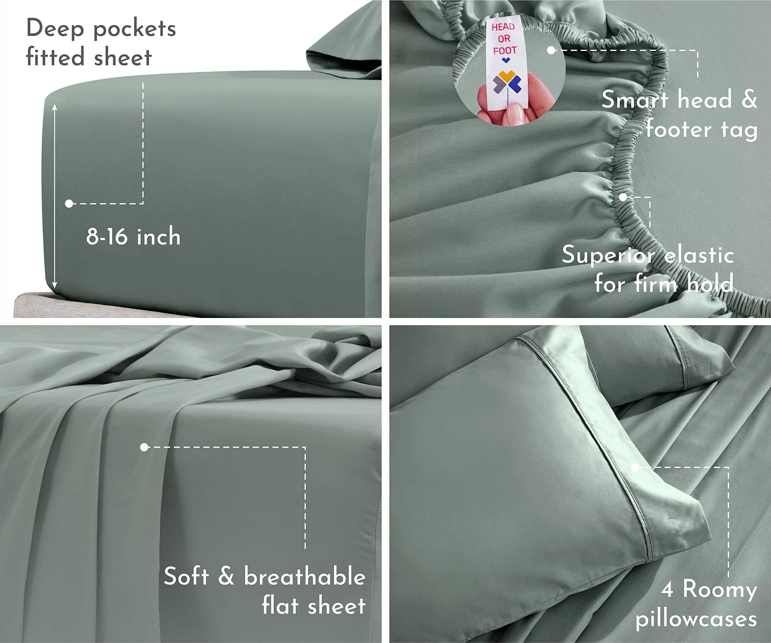 Juego de sábanas California Design Den de 6 -Verde Salvia
