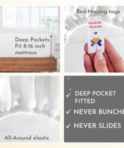 ¡Despiértese renovado en todas las estaciones con nuestro juego de sábanas California Design Den de 400 hilos de algodón 100% tamaño king! Nuestras sábanas de satén certificadas de 400 hilos son suaves y frescas, brindándole un sueño confortable durante todo el año. Como ganador del premio a la Mejor Ropa de Cama de Buenas Prácticas Domésticas 2023, nuestras sábanas han sido elogiadas en un artículo del Wall Street Journal como «tan suaves como sábanas 3 veces más caras» – ¡verdaderamente un gran valor! El juego de sábanas incluye una sábana encimera, una sábana bajera ajustable con elástico que se adapta a colchones de 8 a 16 pulgadas de profundidad, y dos fundas de almohada tamaño king. El elástico de alta calidad asegura un ajuste ceñido que no se aflojará ni se agrupará, mientras que los indicadores laterales de cabecera/pie facilitan hacer la cama. Nuestras sábanas son fáciles de lavar y mantener: simplemente lávelas y séquelas a máquina en un ajuste normal, y seguirán luciendo fantásticas durante años. Con bolsillos profundos, son duraderas, apenas se arrugan y no se apelotonan, desteñen ni encogen. El algodón es naturalmente transpirable y suave con su piel, promoviendo la regulación natural de la temperatura y un mejor funcionamiento diurno, según la National Sleep Foundation. Nuestras sábanas están certificadas Oekotex Standard 100, probadas para sustancias dañinas para proteger su salud. En California Design Den, nos comprometemos con la calidad y la sostenibilidad. En 2022 y 2023, donamos más de 22,000 piezas de ropa de cama a organizaciones benéficas locales en EE. UU. No utilizamos plástico en nuestro embalaje, y nuestras sábanas se producen en nuestra fábrica de propiedad y operación familiar en la India. Cada pieza se inspecciona para garantizar la calidad, y prometemos reemplazar cualquier producto defectuoso sin costo alguno para usted. Compre con confianza con nuestra política de devoluciones de 30 días, incluso si ha lavado o usado nuestro producto.