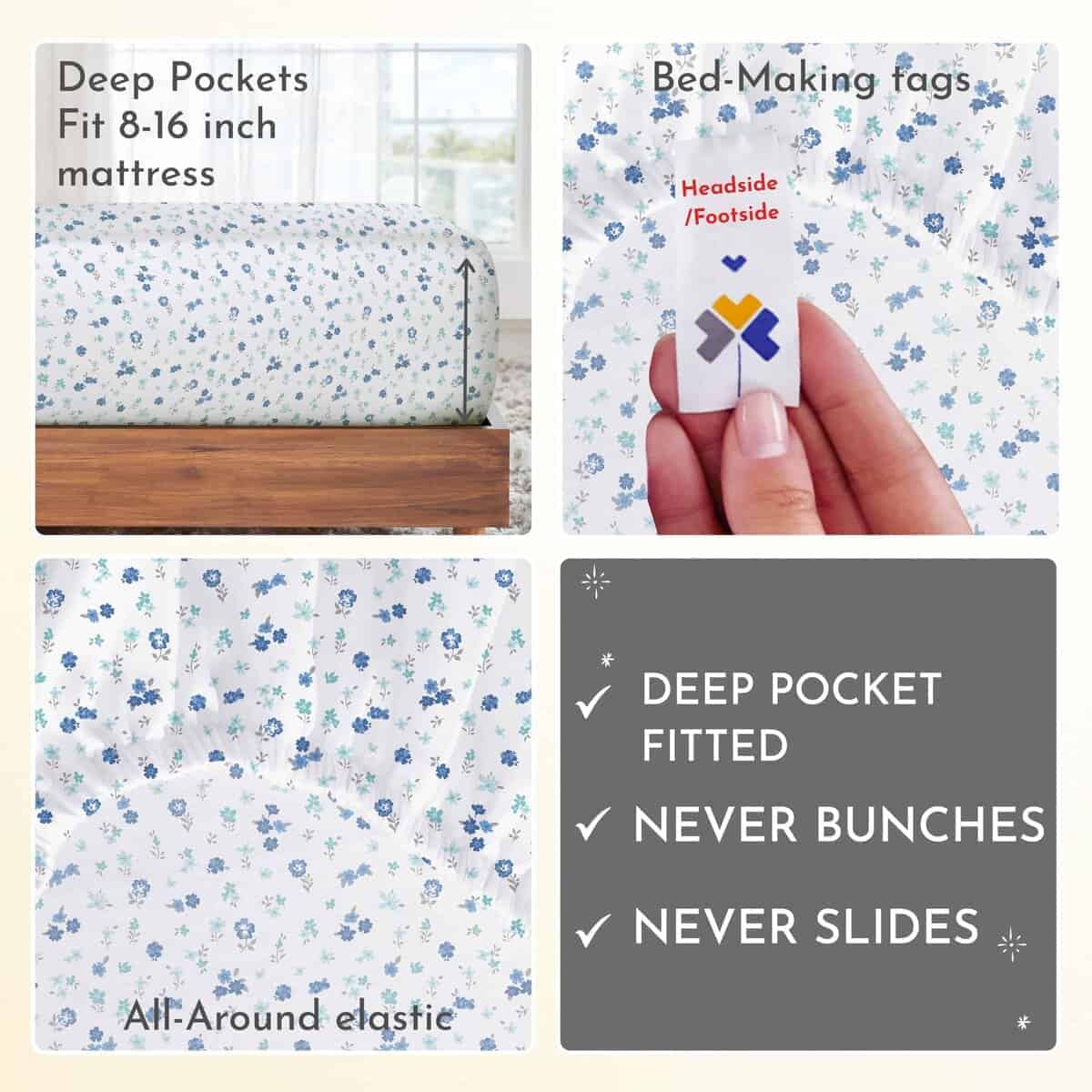 Descubre la mezcla perfecta de estilo y comodidad con juegos de sábanas estampadas Añade un toque de personalidad a tu ropa de cama con nuestros juegos de sábanas estampadas de satén 100% algodón de 400 hilos. Estas sábanas ofrecen un confort increíble y presentan estampados claros y bien definidos que expresan sutilmente tu estilo personal. Priorizamos tanto el estilo como la practicidad, asegurando que nuestras sábanas estampadas cumplan con altos estándares de calidad y durabilidad. La tela naturalmente lujosa y suave proporciona un sueño reparador, mientras que los colores vibrantes perduran durante mucho tiempo, evitando desvanecimientos o destiñes con el lavado. Nuestros juegos de sábanas estampadas están confeccionados con el mejor algodón de satén con una calidad de impresión incomparable. El tejido de la tela hace que sea ideal para estampados hermosos y de buen gusto, con colores perfectamente equilibrados evitando cualquier error de impresión o patrones demasiado llamativos. Estos juegos de sábanas están elaborados de manera experta, con costuras de calidad y bolsillos profundos de 16 pulgadas para adaptarse a colchones de 8 a 16 pulgadas de profundidad. El elástico fuerte y seguro garantiza que tus sábanas permanezcan en su lugar, incluso después de años de uso. Personaliza tu dormitorio – Eleva tu ropa de cama con nuestras sábanas estampadas, que incluyen una variedad de divertidos estampados florales y rayas. Muestra tu personalidad y añade un toque de color a tu dormitorio. Es hora de expresarte con nuestras sábanas estampadas elegantes y prácticas.