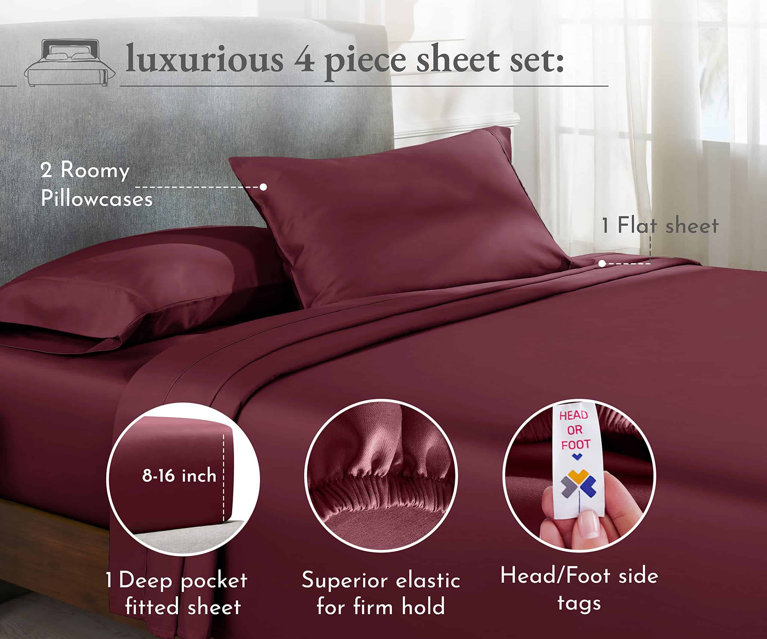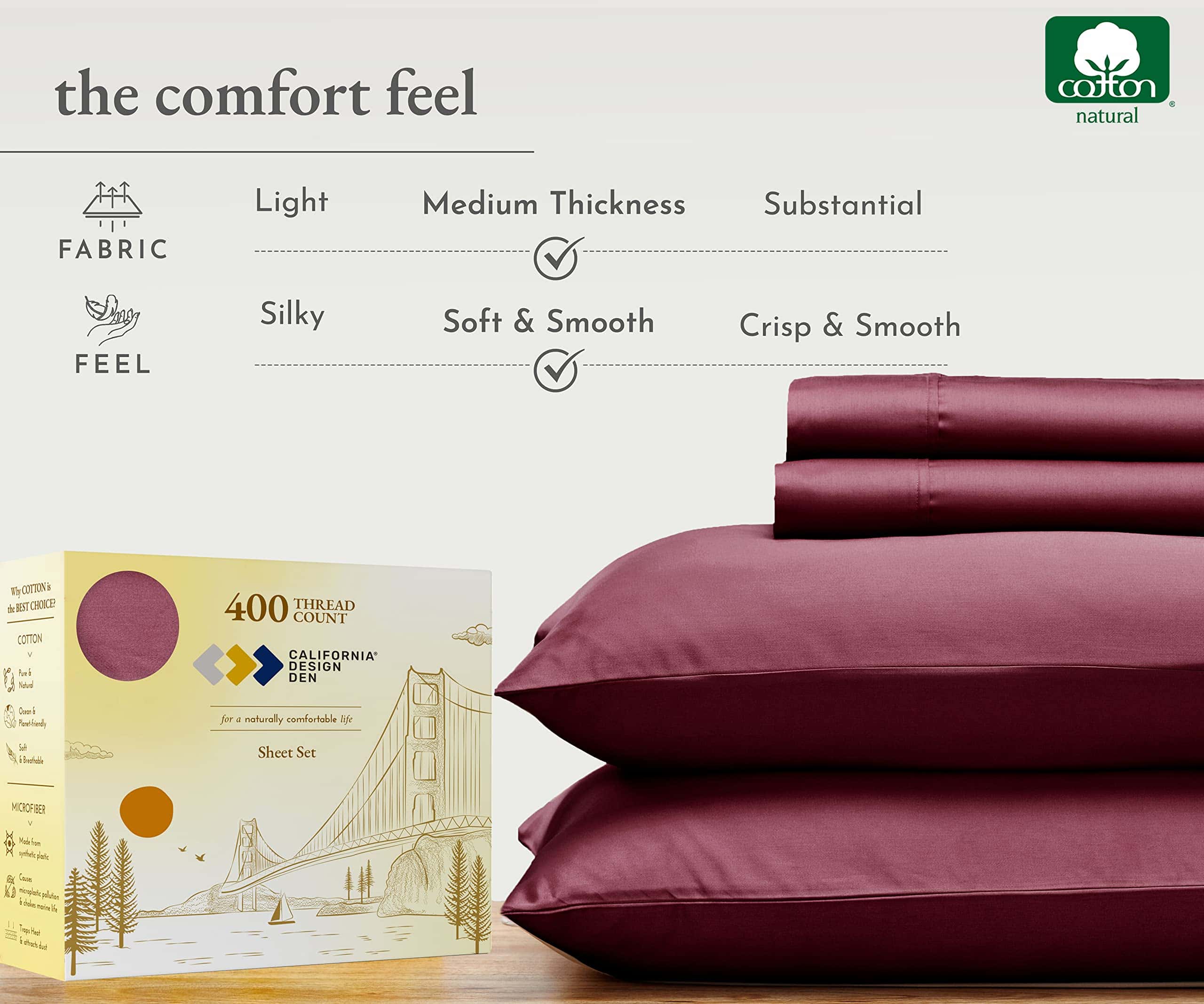 Juego de sábanas California Design Den -Rojo Borgoña