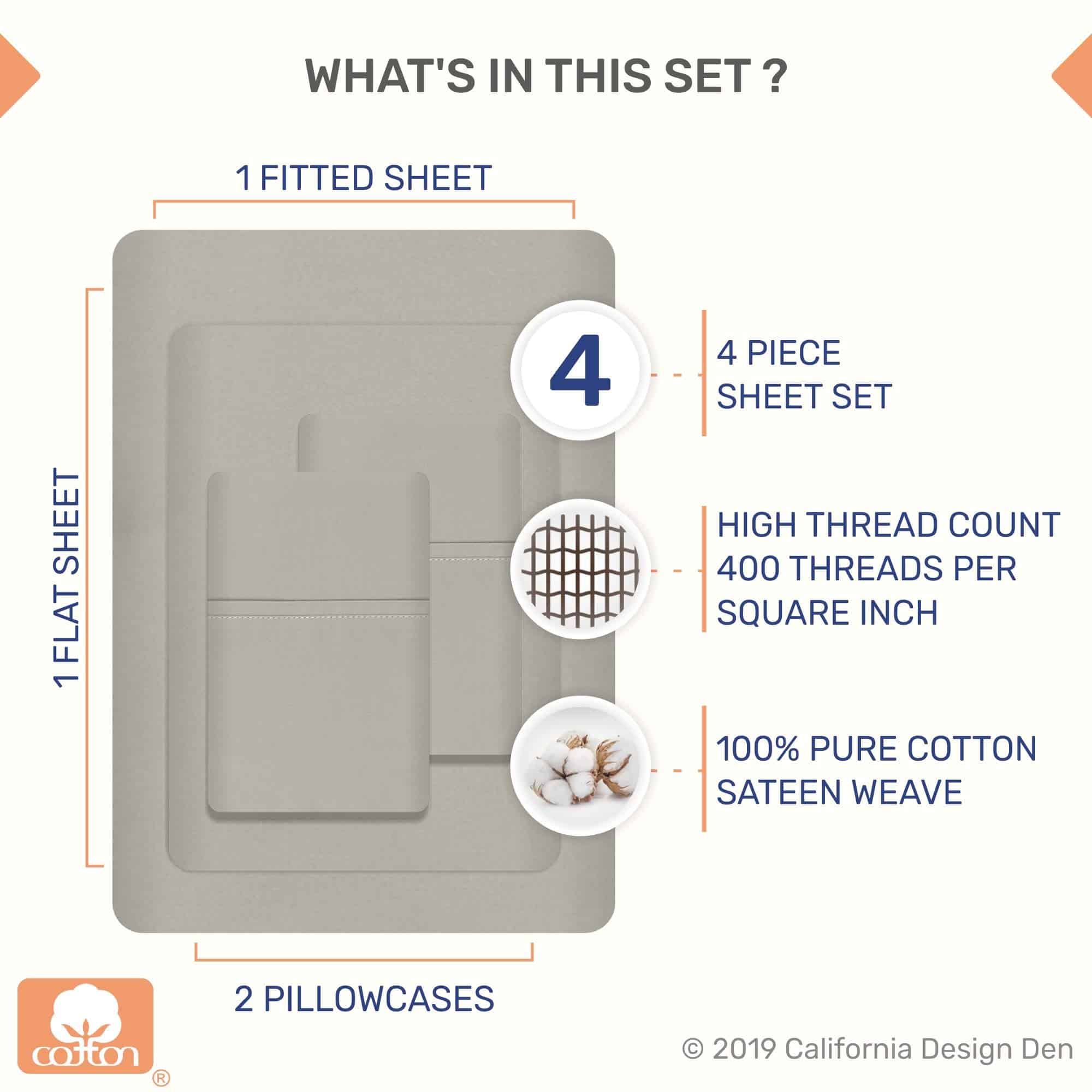 Transforma tu experiencia de sueño con nuestro juego de sábanas de 400 hilos ganador del premio Good Housekeeping. Hechas de algodón 100% de fibra larga, estas sábanas ofrecen la combinación perfecta de suavidad, resistencia y transpirabilidad, asegurando una noche de sueño reparador y rejuvenecedor. Estas sábanas están diseñadas para ofrecer una durabilidad y suavidad excepcionales. El tejido satinado realza el brillo natural de la tela y su textura suave. Con 400 hilos, estas sábanas encuentran el equilibrio perfecto entre lujo y comodidad, ofreciendo una sensación suave y sedosa contra tu piel. La sábana ajustable cuenta con bolsillos profundos que acomodan fácilmente colchones de hasta 16 pulgadas de profundidad, garantizando un ajuste ajustado y seguro. El elástico premium alrededor mantiene la sábana en su lugar toda la noche. Las fibras naturales de algodón son transpirables, promoviendo el flujo de aire y ayudando a regular la temperatura corporal para un sueño cómodo. Nuestras sábanas están diseñadas para mantenerte fresco en verano y cálido en invierno, haciéndolas perfectas para su uso durante todo el año. El tejido de algodón transpirable asegura el máximo confort en cualquier clima. Disponible en una variedad de colores y diseños, nuestro juego de sábanas aporta un toque de elegancia a cualquier decoración de dormitorio.