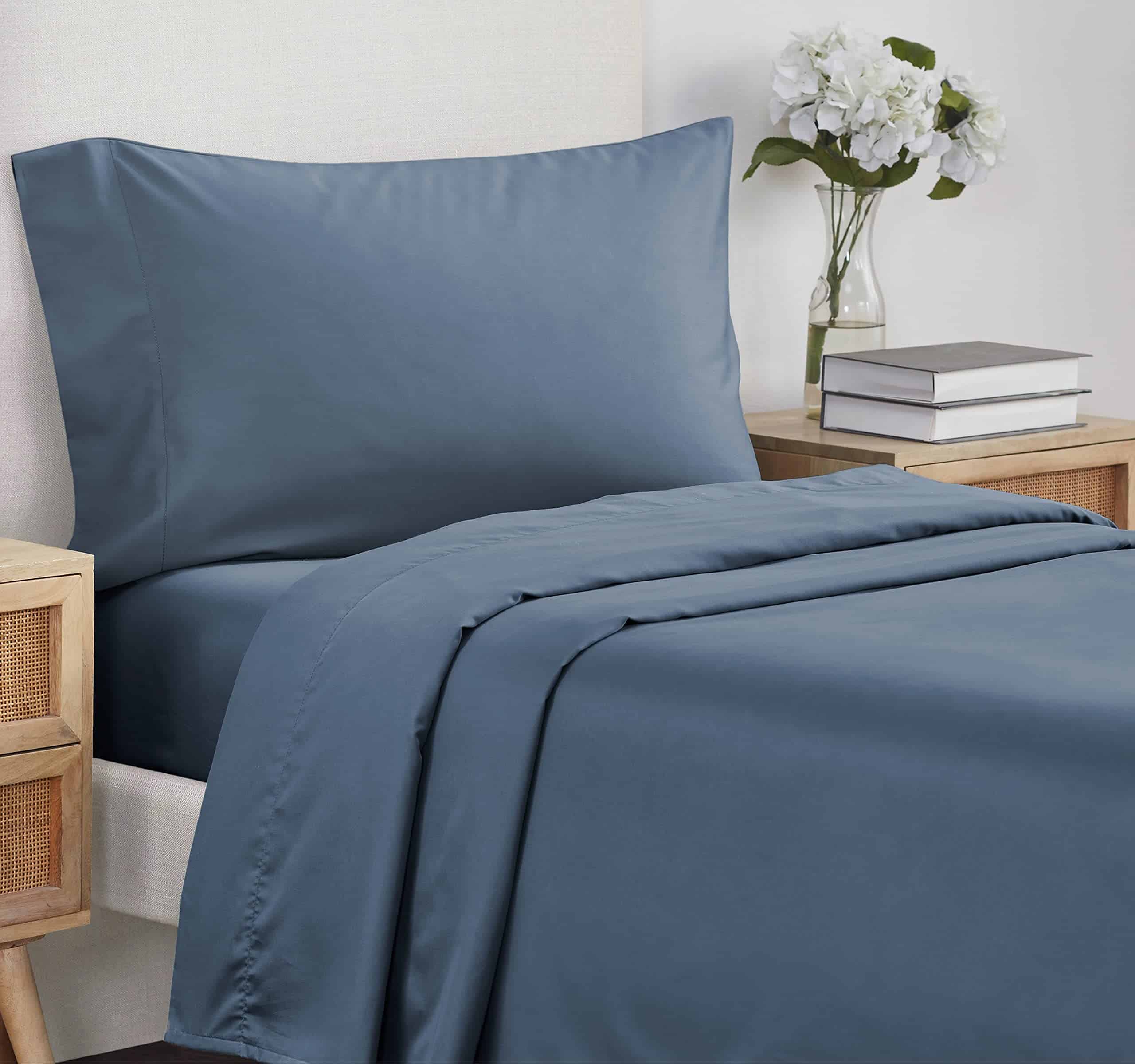 Transforma tu experiencia de sueño con nuestro juego de sábanas twin de California Design Den, elaborado con los más puros 100% algodón satén. Cada pieza ofrece una lujosa frescura y suavidad suprema que garantiza que las mañanas sean tan revitalizantes como reparadoras. Nuestro set de sábanas azules de 3 piezas incluye una sábana plana de 66 pulgadas de ancho por 100 pulgadas de largo, una sábana ajustable de 39 pulgadas de ancho por 75 pulgadas de largo y 1 funda de almohada estándar/queen de 21 pulgadas de ancho por 32 pulgadas de largo. Nuestra sábana ajustable de bolsillo profundo está diseñada para adaptarse a colchones de hasta 15 pulgadas de profundidad, con un elástico de alta calidad e indicadores para hacer la cama para un ajuste perfecto y seguro. Ideal para aquellos que duermen calientes, nuestras sábanas twin están hechas de algodón de fibra larga, conocido por sus propiedades naturales de absorción de la humedad. Experimenta la suave textura mantecosa de estas sábanas twin refrigerantes que invitan a un sueño más profundo y reparador. Descansa tranquilo con nuestras sábanas certificadas por Oekotex, libres de sustancias nocivas. Estas sábanas son lavables a máquina, no se deshacen, decoloran ni encogen y resisten los lavados repetidos sin perder su color o textura. Elaboradas con cuidado en India, nuestras sábanas encarnan la combinación perfecta de lujo y responsabilidad. Hemos donado más de 22,000 piezas de ropa de cama a organizaciones benéficas de EE. UU. y empaquetamos nuestros productos de manera sostenible sin plástico. Experimenta un apoyo excepcional de nuestro dedicado equipo de atención al cliente con cada compra.