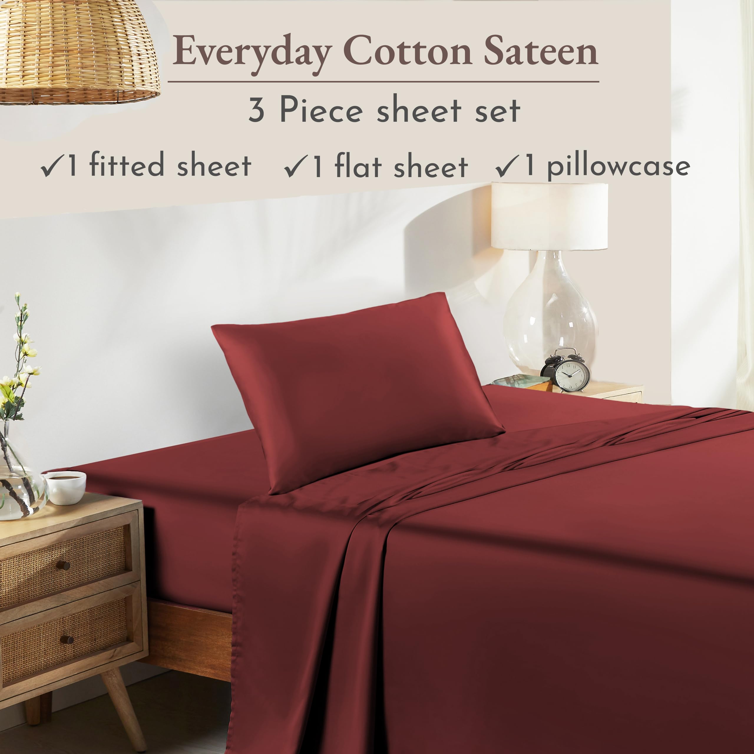 Juego de sábanas twin XL de 3 piezas hecho de tela de satén de algodón 100% naturalmente cómodo. Estas suaves, transpirables y refrigerantes sábanas y fundas de almohada están diseñadas para brindar comodidad duradera, durante todo el año. Estas sábanas twin XL no son microfibra sintética o sábanas de poliéster mezclado. Estas sábanas están hechas utilizando el mejor algodón cultivado en India y todos nuestros juegos de sábanas y fundas de almohada de algodón son amados por los clientes por su calidad superior, suavidad y comodidad. Viene con un juego de sábanas twin XL de 3 piezas que incluye: 1 sábana plana superior (66″ W x 100″ L), 1 sábana inferior ajustada (39″ W x 80″ L) con bolsillo de 12″ de profundidad, y 1 funda de almohada de tamaño estándar (21″ W x 27″ L). La funda con cierre de sobre garantiza un aspecto ordenado. Nuestra sábana ajustada inferior tiene un elástico en toda la circunferencia y un indicador de «lado de la cabeza / lado de los pies» para una experiencia de cama fácil. Cuidado de lavado y soporte: Estas sábanas de cama refrigerantes de tamaño twin XL son fáciles de lavar y secar a máquina y se vuelven más suaves con cada lavado. Han sido probadas para contracción, formación de bolitas y solidez del color. Nuestra colección de ropa de cama está certificada como Estándar 100 por Oeko-Tex para garantizar que no haya sustancias dañinas en su cama. Utilizamos cajas no plásticas para nuestro embalaje y estamos comprometidos con procesos conscientes y éticos.