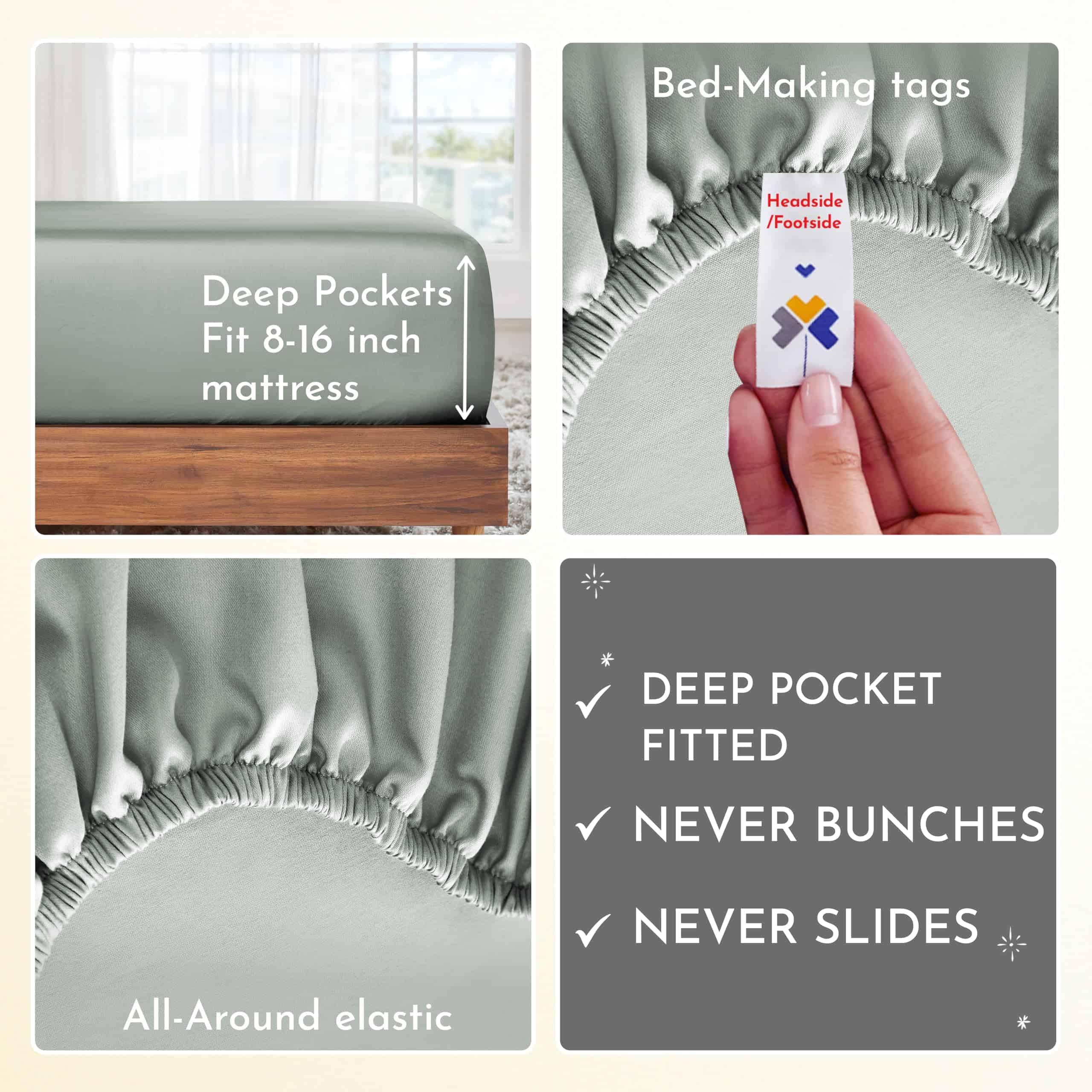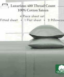 Wake up refreshed in all seasons with our certified 400-thread count sateen 100 percent cotton sheets which are soft and cool, providing you with comfortable sleep throughout the year. As featured in a 2023 Wall Street Journal article, our sheets were referred to as «as soft as sheets 3x the price» – a great value indeed. Our 4-piece full bed sheets set includes 1 top sheet, 1 bottom fitted sheet with all-around elastic that fits mattresses 8 to 16 inches deep, and 2 standard size pillowcases. The high-quality elastic won’t loosen or bunch up, and head/foot side indicators make bed-making a breeze. You can machine wash and dry our hotel quality sheets at a normal setting, and they will come out looking great for years. Our bed sheets 100% cotton are durable, hardly wrinkle, and won’t pill, fade, or shrink. Cotton is naturally breathable and gentle on your skin. According to the National Sleep Foundation, synthetic fabrics like microfiber can disrupt sleep and cause health issues, while 100% cotton sheets promote natural temperature regulation and better daytime functioning. Our full bedding set is certified Oekotex Standard 100, tested for harmful substances to protect your health. In 2022 & 2023, we donated over 22,000 pieces of bedding to local charities in the USA. We do not use plastic in our packaging, and our sheets are produced in our family-owned and operated factory in India. Each piece is inspected for quality, and we promise to replace any defective products at no cost to you. Buy with confidence with our 30-day return policy, even if you’ve washed or used our product.