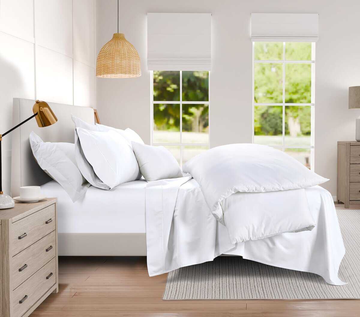 2. Juego de Sábanas para Cama California King de Bolsillo Profundo de 4 Piezas: Abraza el lujo con nuestro meticulosamente elaborado juego de sábanas de algodón tamaño king de bolsillo profundo de 4 piezas. El juego incluye 1 sábana plana (104″ W x 110″ L), 1 sábana ajustable (73″ W x 85″ L) con un bolsillo profundo que se adapta a colchones de 8 a 16 pulgadas y elástico en todo el contorno para un ajuste ceñido, y 2 fundas de almohada estándar (20″ W x 40″ L). El juego también cuenta con etiquetas superiores e inferiores para hacer la cama fácilmente.