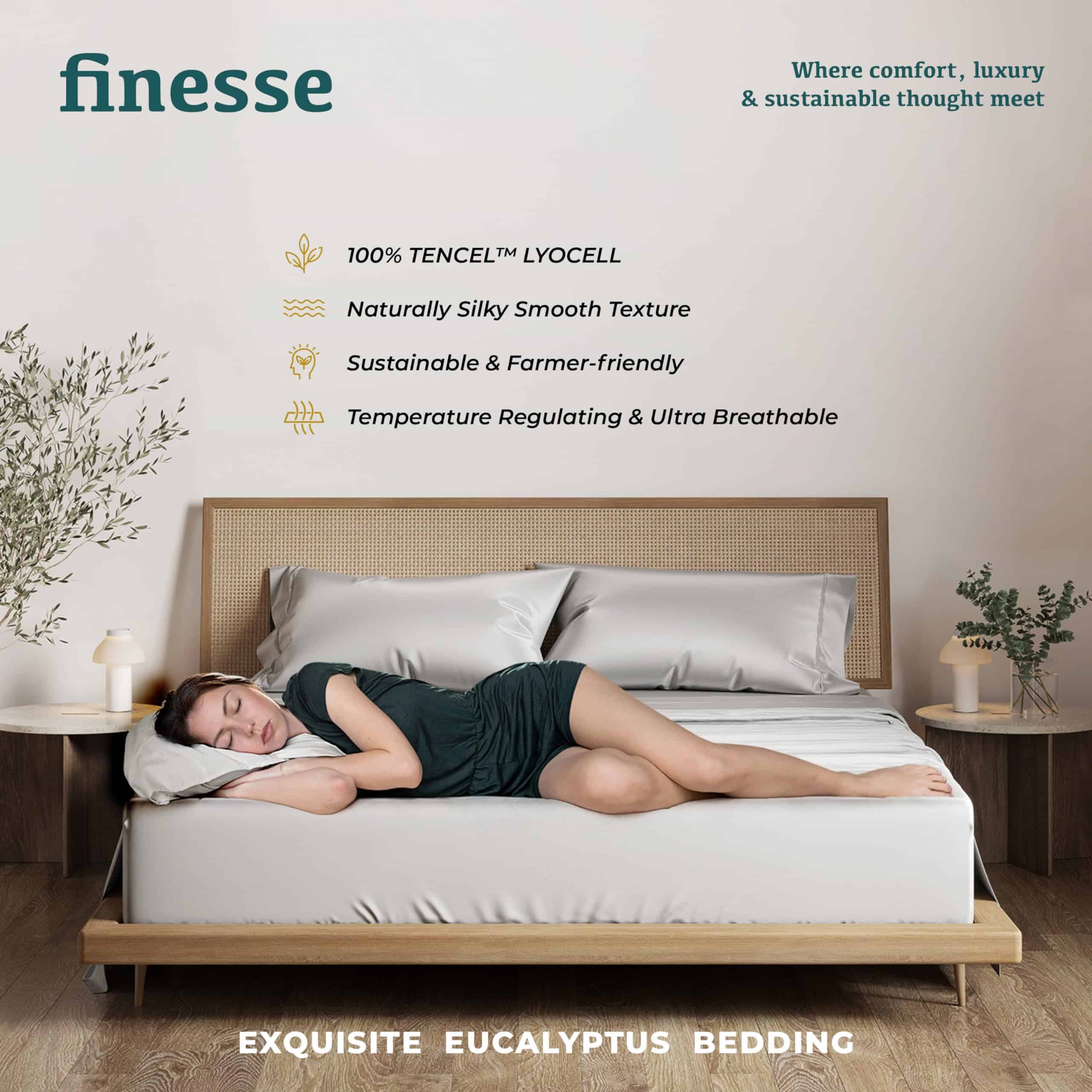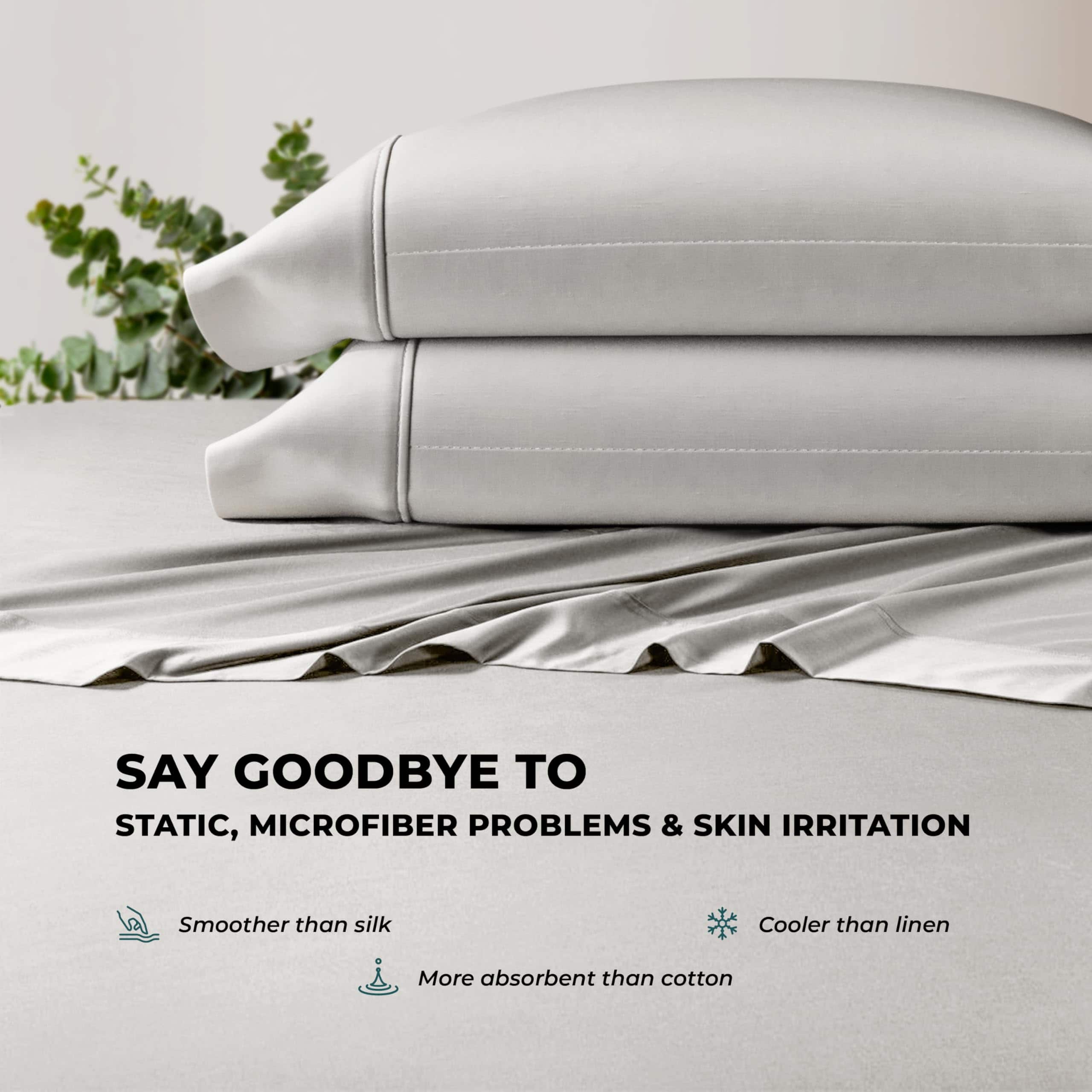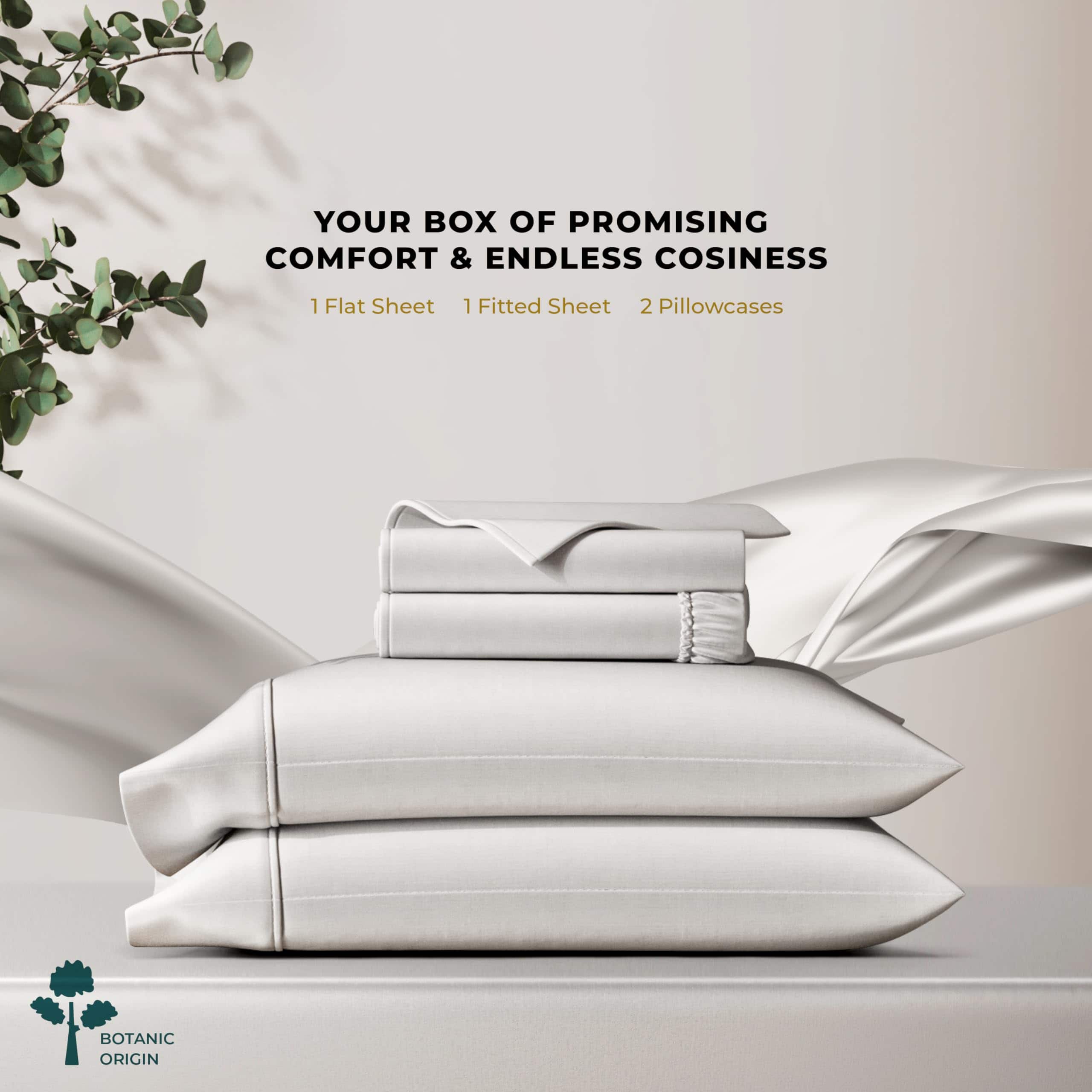 4. Sábanas de Lujo de Eucalipto en Casa: Transforma tu dormitorio en un refugio de 5 estrellas con nuestras sábanas de lyocell TENCEL. Estas sábanas de cama de eucalipto, elaboradas con telas de TENCEL 100% naturales, mantienen la temperatura perfecta, garantizando un sueño reparador y una comodidad incomparable.