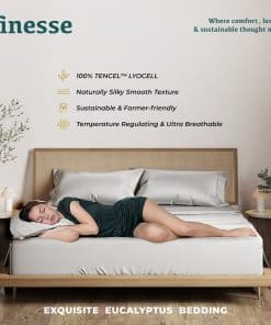 5. Sábanas de Eucalipto Elaboradas con Conciencia: Disfruta de un sueño lujoso y libre de culpa con nuestras sábanas de lyocell TENCEL, diseñadas para brindar confort y sostenibilidad. Estas suaves y cómodas sábanas de enfriamiento california king de bolsillo profundo son una excelente opción para aquellos que buscan las mejores sábanas de enfriamiento para los que duermen calientes
