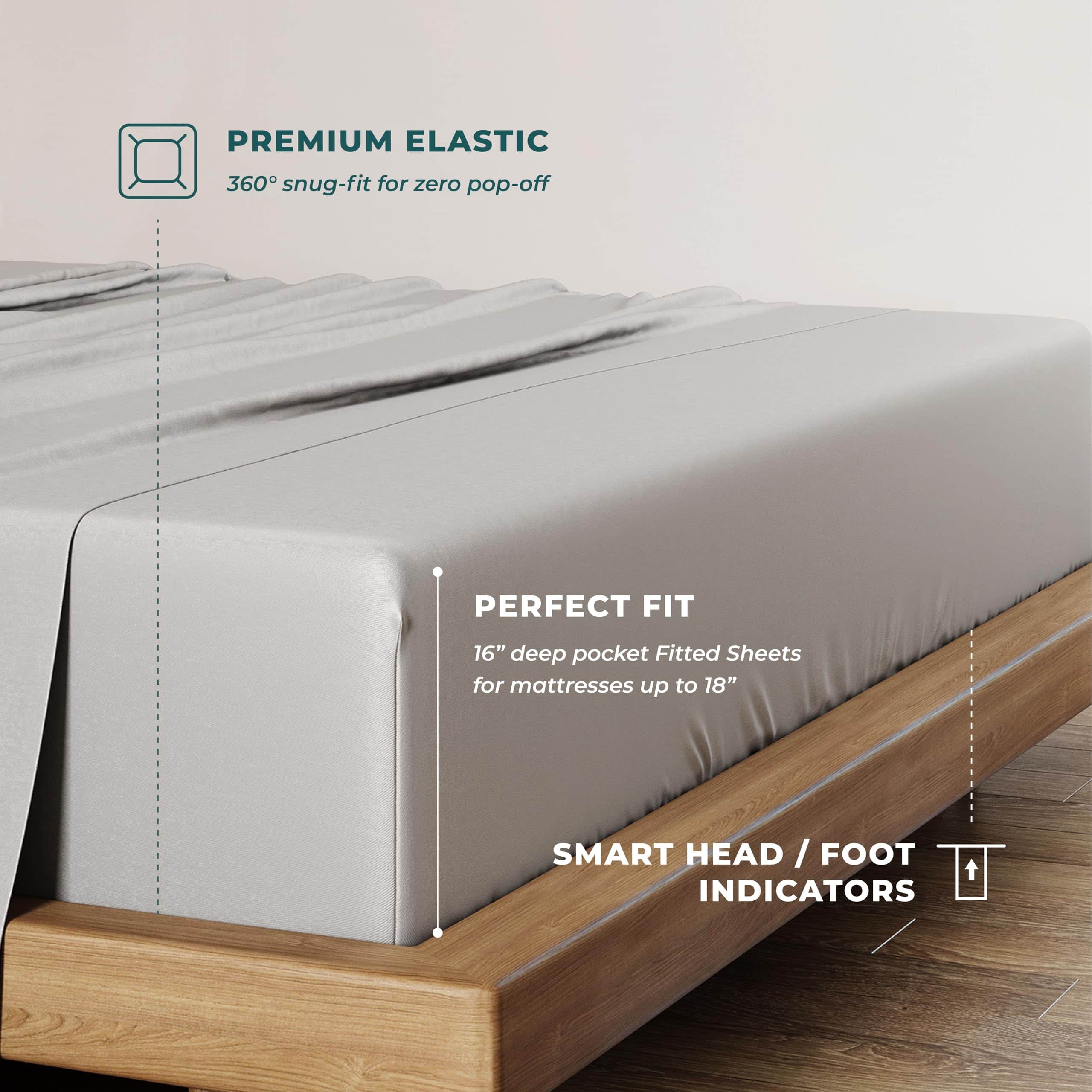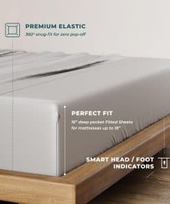 2. Juego de Sábanas de Cama Frescas de TENCEL Lyocell: Nuestros juegos de sábanas california king de enfriamiento de 4 piezas incluyen 1 Sábana Plana (108 x 102), 1 Sábana Ajustable (72 x 84 + 16 bolsillos profundos) y 2 Fundas de Almohada King (21 x 40). Nuestras sábanas TENCEL california king cuentan con un diseño de bolsillo profundo que se ajusta perfectamente a colchones de hasta 18 pulgadas, asegurando que las sábanas permanezcan en su lugar toda la noche. Las etiquetas de la cabecera/pie de cama ayudan a hacer la cama fácilmente.