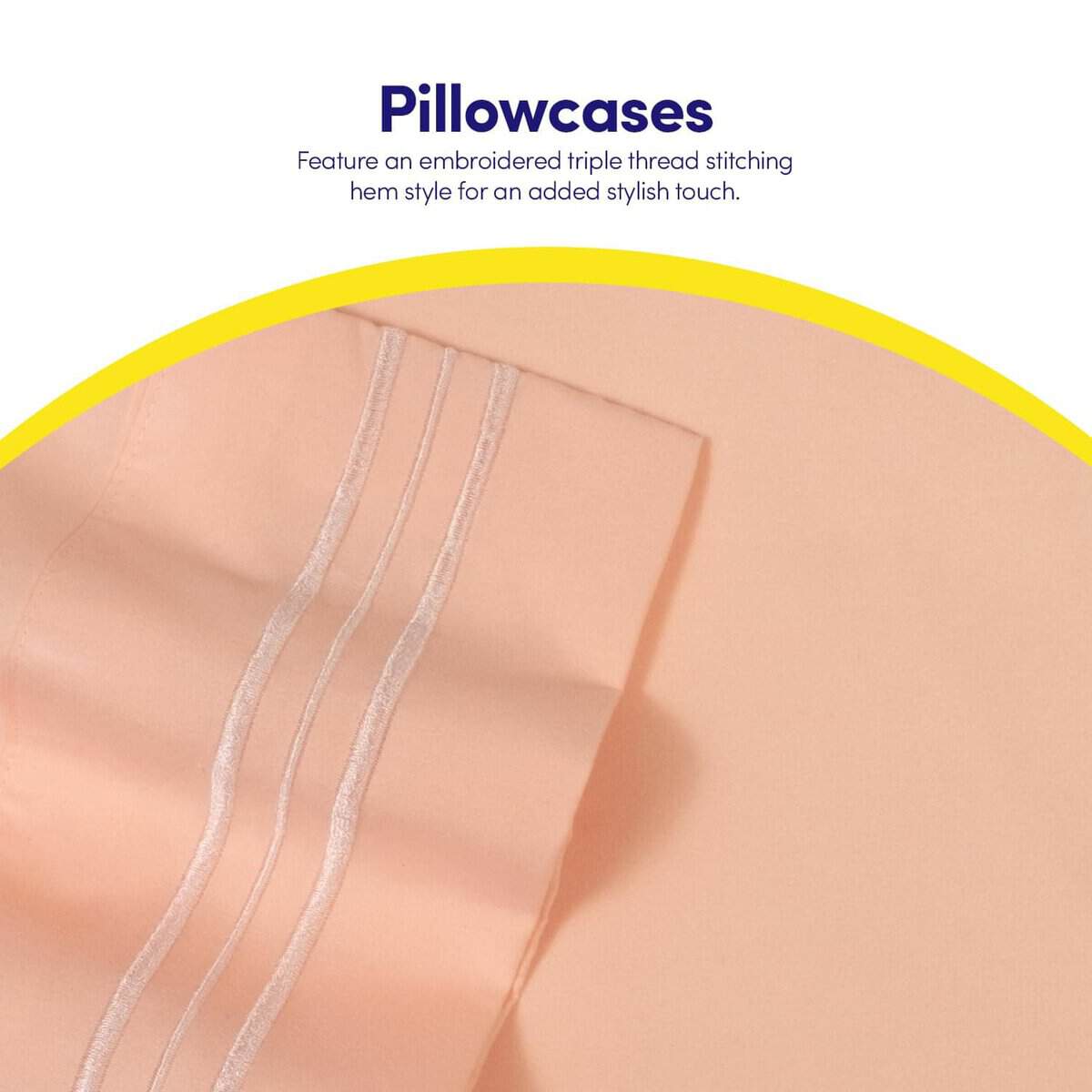 – Split King: 1 Sábana Plana (102″x105″), 2 Sábanas Ajustadas (39″x80″), 2 Fundas de Almohada King (20″x40″)