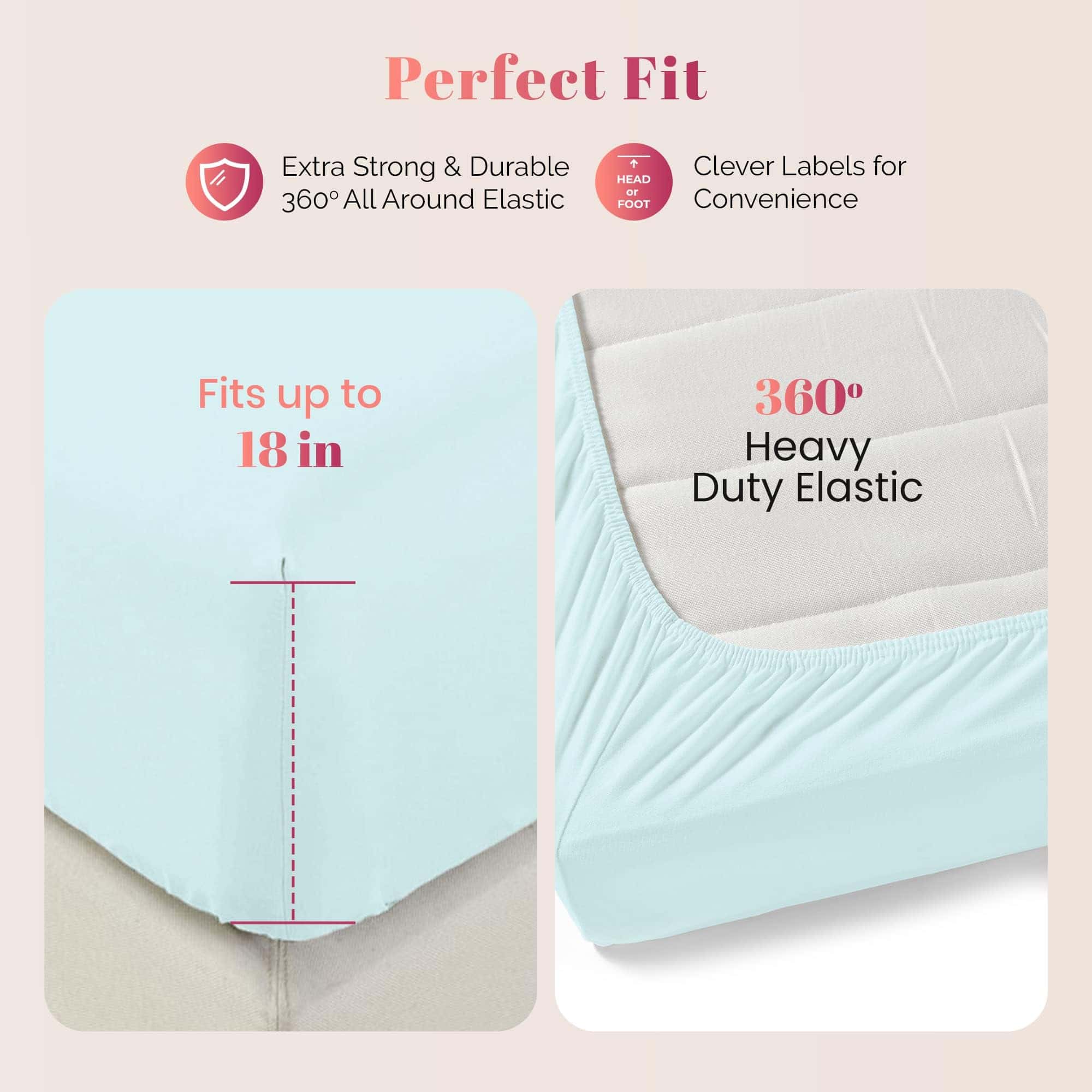 5. Desempaque el Confort Con Nuestro Juego de Sábanas de 4 Piezas: Nuestro juego de sábanas de algodón egipcio tamaño California King incluye 1 sábana plana: 108 x 102, 1 sábana ajustable 72 x 84, y un par de fundas de almohada tamaño King 21 x 41. La sábana ajustable tiene un bolsillo extra profundo de 17 pulgadas y elástico en todo el contorno para adaptarse a todo tipo de colchones. Las etiquetas de cabeza/pie indican los lados para hacer la cama. Las fundas de almohada tienen un cierre abierto para que puedas deslizar fácilmente las almohadas.