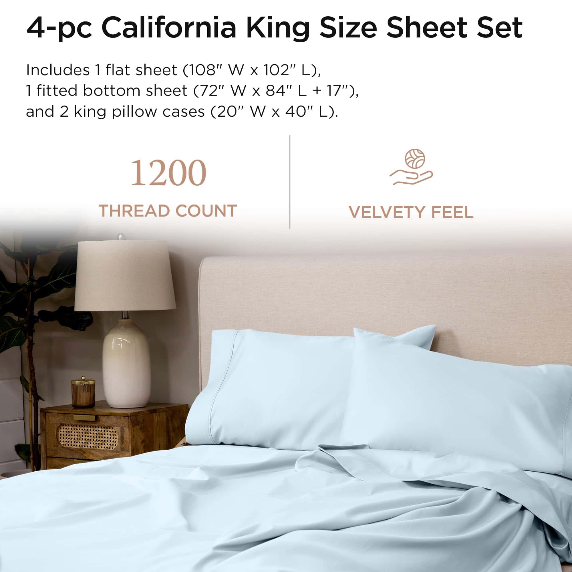 Juego de Sábanas California King -Azul Claro