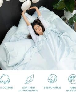 Hecho de algodón egipcio de alta calidad de fibra larga, este juego de sábanas ofrece una tela suave, suave y duradera con un elegante tejido de satén. La construcción de 800 hilos garantiza una sensación densa pero transpirable para una experiencia de sueño tipo hotel en casa. Las sábanas proporcionan una excelente transpirabilidad y propiedades que absorben la humedad, asegurando que te mantengas fresco y cómodo durante toda la noche. El tejido de satén agrega un acabado sedoso mientras promueve el flujo de aire. Estas sábanas están diseñadas para ser lavables a máquina y mantener su suavidad, color y calidad a través de lavados repetidos. Resisten la decoloración, la formación de bolitas y las arrugas, convirtiéndolas en una adición duradera y de bajo mantenimiento a tu dormitorio.