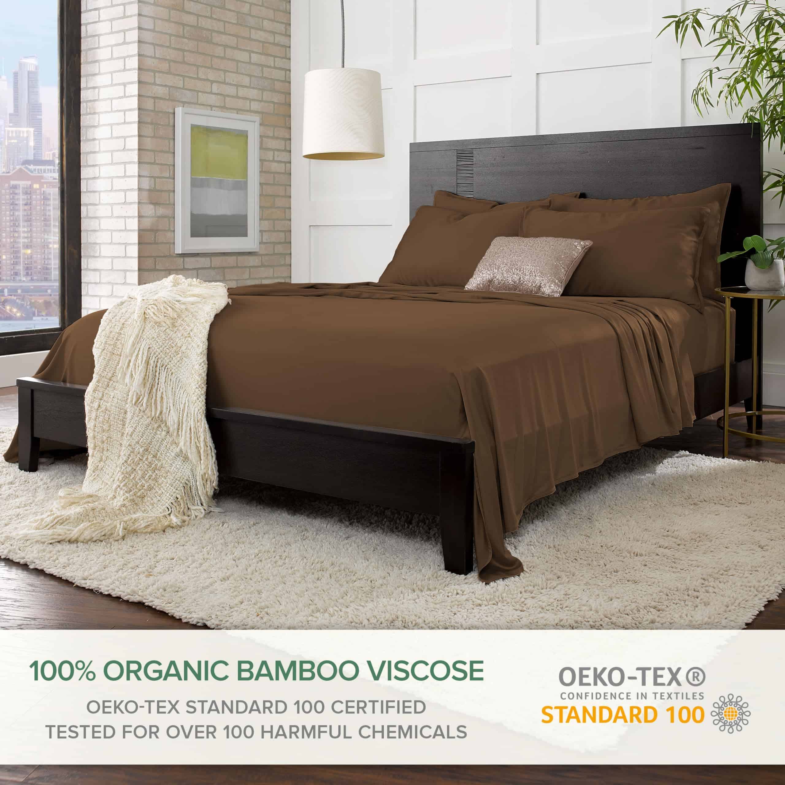 Juego completo de sábanas California King de Pure Bamboo, hecho con genuina viscosa orgánica derivada del bambú. Certificado por OEKO-TEX Standard 100, probado libre de más de 100 sustancias dañinas para la seguridad de tu familia. El juego incluye una sábana ajustable, una sábana plana y dos fundas de almohada con cierre de sobre. Las costuras doblemente cosidas garantizan durabilidad y facilidad de cuidado al lavar con agua fría. El tejido de bambú es naturalmente termorregulador, manteniéndote fresco y relajado mientras duermes. Los bolsillos ajustados profundos y el tejido de satén con 300 hilos aseguran un ajuste perfecto y una sensación suave y sedosa. Cada compra está respaldada por una garantía de por vida contra defectos en materiales y fabricación, permitiéndote dormir tranquilo sobre estas suaves sábanas, sabiendo que están hechas con materiales de origen responsable.