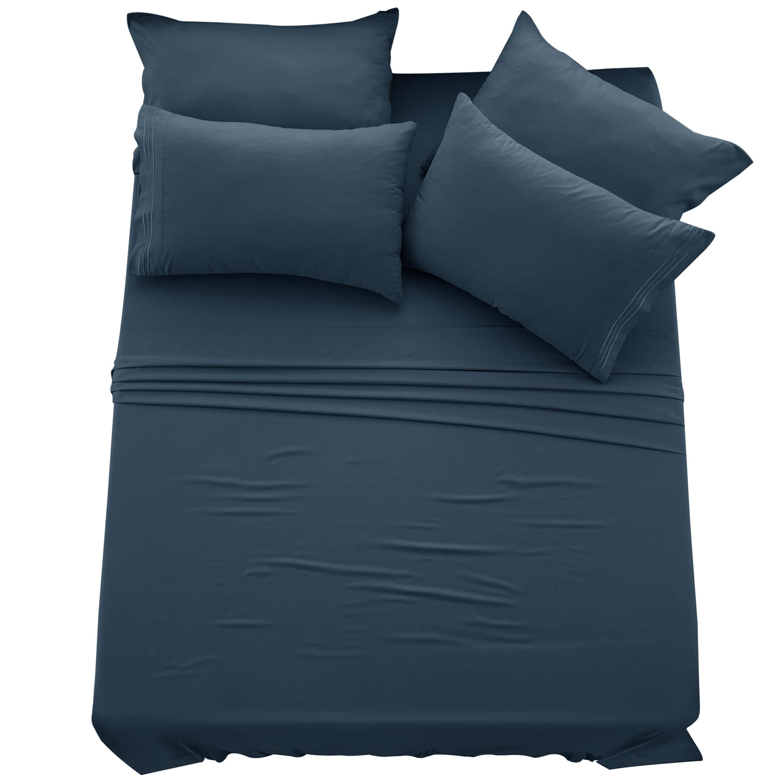 1. JUEGO DE SÁBANAS DE 6 PIEZAS: El juego de sábanas tamaño King incluye 1 sábana plana (105×102 + 4 pulgadas), 1 sábana ajustable (78×80) y 4 fundas de almohada (20 x 40 + 4 pulgadas, 2 bordadas y 2 lisas). Disponible en varios colores para combinar con la decoración de tu habitación. 2. COMODIDAD PARA TODO EL AÑO: Nuestros juegos de sábanas están diseñados para ofrecer comodidad durante todo el año. Ofrecen una sensación ligera y transpirable para las noches de verano y brindan calidez y acogimiento durante los meses más fríos, haciéndolos versátiles para todas las estaciones. 3. BOLSILLO PROFUNDO / ELÁSTICO EN TODO EL CONTORNO: La sábana ajustable con bolsillo profundo y elástico en todo el contorno se adapta a colchones de hasta 16 pulgadas de profundidad. 4. MICROFIBRA CEPILLADA: Estos juegos de sábanas y fundas de almohada están hechos de microfibra suave y cepillada para mayor comodidad y durabilidad. 5. FÁCIL MANTENIMIENTO: Nuestro juego de sábanas está certificado según el estándar OEKO-TEX 100, para altos estándares de seguridad. Simplemente lávalo a máquina suavemente en agua fría y sécalo a baja temperatura. Evita usar lejía para una durabilidad duradera.
