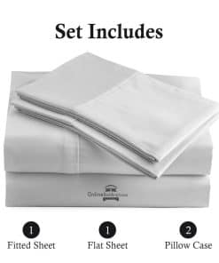 Las sábanas de cama en línea están hechas con fibras naturales más largas que el algodón tradicional, lo que crea una tela transpirable y sedosa. Disfrute de las mismas sábanas de alta calidad que se encuentran en hoteles de lujo de todo el mundo. Para lograr una construcción duradera, peinamos el algodón de fibra larga manualmente para filtrar las impurezas. Después, un artesano habilidoso cose cada sábana y funda de almohada. La auditoría dual nos ayuda a asegurar que sus nuevas sábanas de alta calidad tengan una sensación excepcionalmente suave, superior a la de las sábanas orgánicas, de microfibra o de bambú. Detalles del Producto -Tipo de Producto: Juego de Sábanas de 4 PiezasMaterial: Algodón Egipcio 100%Hilos: 800Bolsillo Profundo: 12″ PulgadasQué incluye: Juego de Sábanas de 4 Piezas Incluye 1 Sábana Plana ~ 1 Sábana Ajustable ~ 2 Fundas de AlmohadaInstrucciones de Cuidado -Lavable a máquina con agua fría, ciclo delicado con detergente suave. No use lejía, seque este juego de sábanas con ajuste bajo. Para evitar arrugas, recomendamos colocar sus sábanas de algodón egipcio en su cama justo después de sacarlas de la secadora. GARANTÍA DE SATISFACCIÓN DEL 100% – Nuestros productos cuentan con un increíble servicio al cliente; nos dedicamos a asegurarnos de que tenga una experiencia excelente, desde el momento en que realiza su pedido hasta después de comenzar a usar su nueva ropa de cama, no hay riesgo. Nuestros diseños de alta calidad combinan con cualquier decoración y son la idea de regalo definitiva para hombres y mujeres, mamás y papás, Día de San Valentín – Día de la Madre – Día del Padre y Navidad. Lo mejor para cualquier habitación de su hogar – habitación, invitados, habitación infantil, casa de vacaciones.