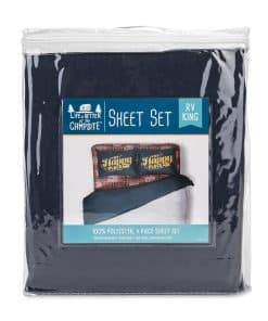 Muestra tu amor por RVing con el juego de sábanas de Camco Life is Better at the Campsite. Hecho para camas RV tamaño king, este juego incluye: (1) sábana ajustable (72 pulgadas x 80 pulgadas), (1) sábana plana (102 pulgadas x 104 pulgadas) y (2) fundas de almohada (20 pulgadas x 40 pulgadas) que están hechas completamente de poliéster. Este juego cuenta con un look vintage. La sábana ajustable tiene un tema de campamento de RV en un patrón de cuadros rojos. La sábana plana y las fundas de almohada son azul oscuro. Las fundas de almohada tienen un RV retro amarillo y «Mi Lugar Feliz» en letra grande. Este juego es lavable a máquina, consulte la etiqueta cosida para las instrucciones de cuidado. Incluye una garantía limitada de 1 año.