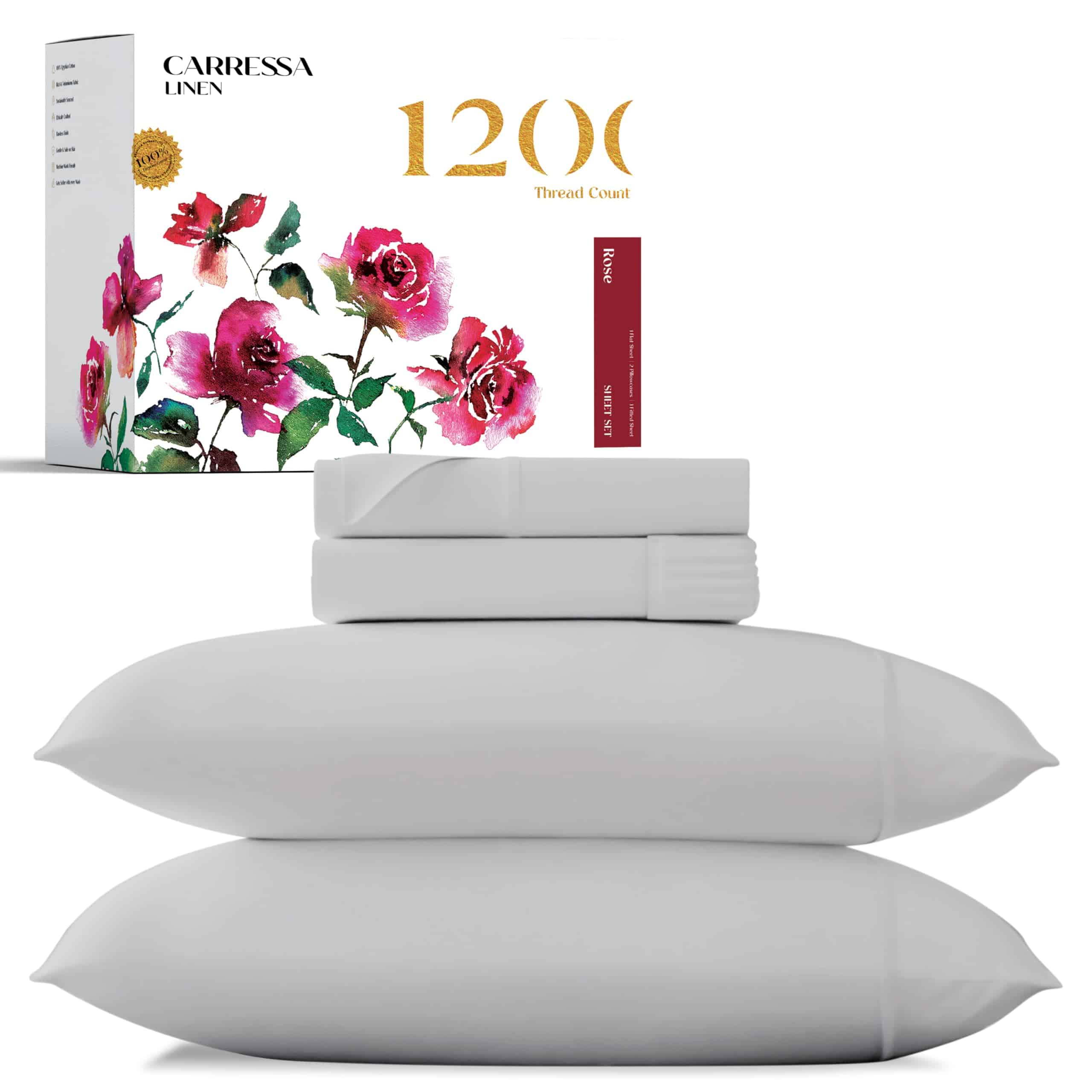 1. Tal vez el juego de sábanas 100% algodón egipcio más lujoso: Hecho de algodón de fibra extra larga para fibras más largas y finas, nuestras sábanas de algodón egipcio 1200 hilos tamaño California King son incomparablemente suaves y acogedoras para el mejor sueño de la temporada. Las sábanas reales y puras de algodón egipcio tamaño California King te mantienen fresco, ultra transpirable y son perfectas para los durmientes calurosos propensos a los sudores nocturnos.