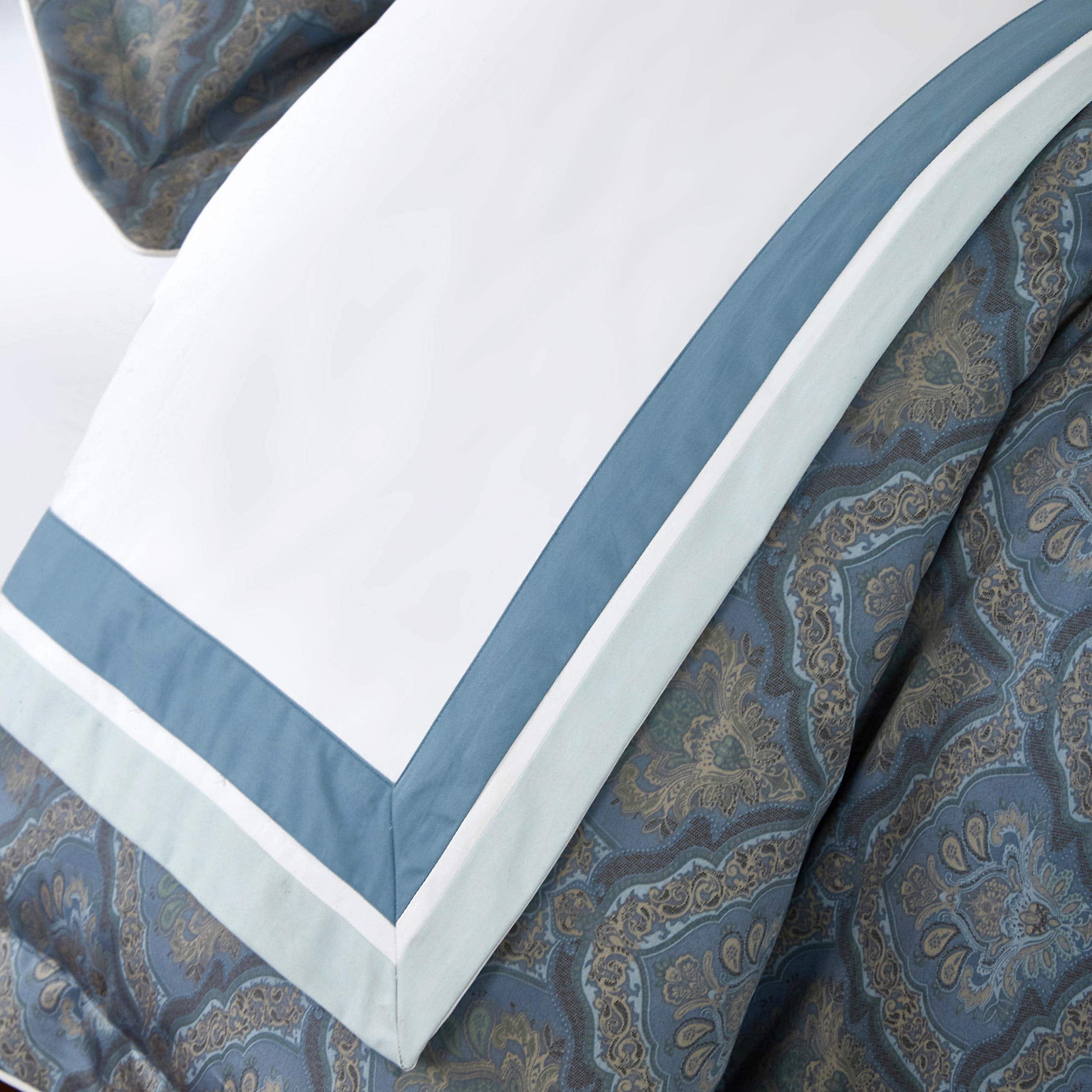 4. Sábana Plana Superior con estilo clásico italiano de esquina con borde en colores contrastantes. La Sábana Ajustable Inferior tiene bolsillo de profundidad de 15 y elástico reforzado de 1 cm alrededor que se ajusta muy bien al colchón. Lavable a máquina, resistente a las arrugas y a la decoloración.