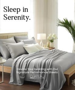 Este juego de sábanas de la colección CHATEAU HOME está fabricado con una mezcla de algodón y Tencel, lo que lo hace suave y transpirable. Con certificación Oeko-TEX, puedes estar seguro de que estás adquiriendo un producto de alta calidad. Estas sábanas de 300 hilos son perfectas para tu cama Queen y tienen un ajuste para colchones de hasta 17 pulgadas de grosor. Disfruta de la frescura y comodidad que te brindarán estas sábanas en un elegante color gris plateado.