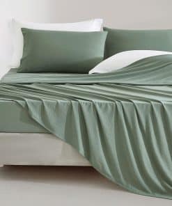 Nuestro juego de sábanas de microfibra lavada de 4 piezas incluye: Sábana plana California King 108″ x 102″, Sábana ajustable California King 72″ x 84″ +14″, 2 Fundas de almohada 20″ x 40″. Con un tejido de poliéster de microfibra cepillado de 95 GSM, estas sábanas son perfectamente transpirables para proporcionar enfriamiento adecuado, al tiempo que cuentan con un tejido de alta densidad para una durabilidad superior y suavidad ligeramente aterciopelada al tacto. No solo son las sábanas increíblemente suaves, sino que también son resistentes a las arrugas, decoloración y formación de bolitas. Dale a tu colchón un ajuste seguro con la sábana ajustable de elástico en todo el contorno para adaptarse a colchones con bolsillos profundos de hasta 14″. Los bolsillos profundos en la sábana ajustable aseguran un ajuste seguro y ceñido en colchones de diferentes profundidades, para que puedas despedirte del deslizamiento o agrupamiento molesto, asegurando un sueño suave e ininterrumpido. Cuidado fácil – Lavable a máquina. Simplemente coloca tus sábanas en la lavadora en agua fría y con colores similares, sécalas a fuego lento para una experiencia de limpieza sin complicaciones. El tejido de microfibra se seca rápidamente, lo que significa que puedes tener sábanas frescas y limpias en poco tiempo, haciendo que el día de lavandería sea un juego de niños. Fabricado en una fábrica con el estándar OEKO-TEX Standard 100, un sistema de certificación independiente que garantiza la confianza del cliente al asegurarse de que los textiles se sometan a pruebas de sustancias nocivas y cumplan con altos estándares de seguridad del producto y del medio ambiente.