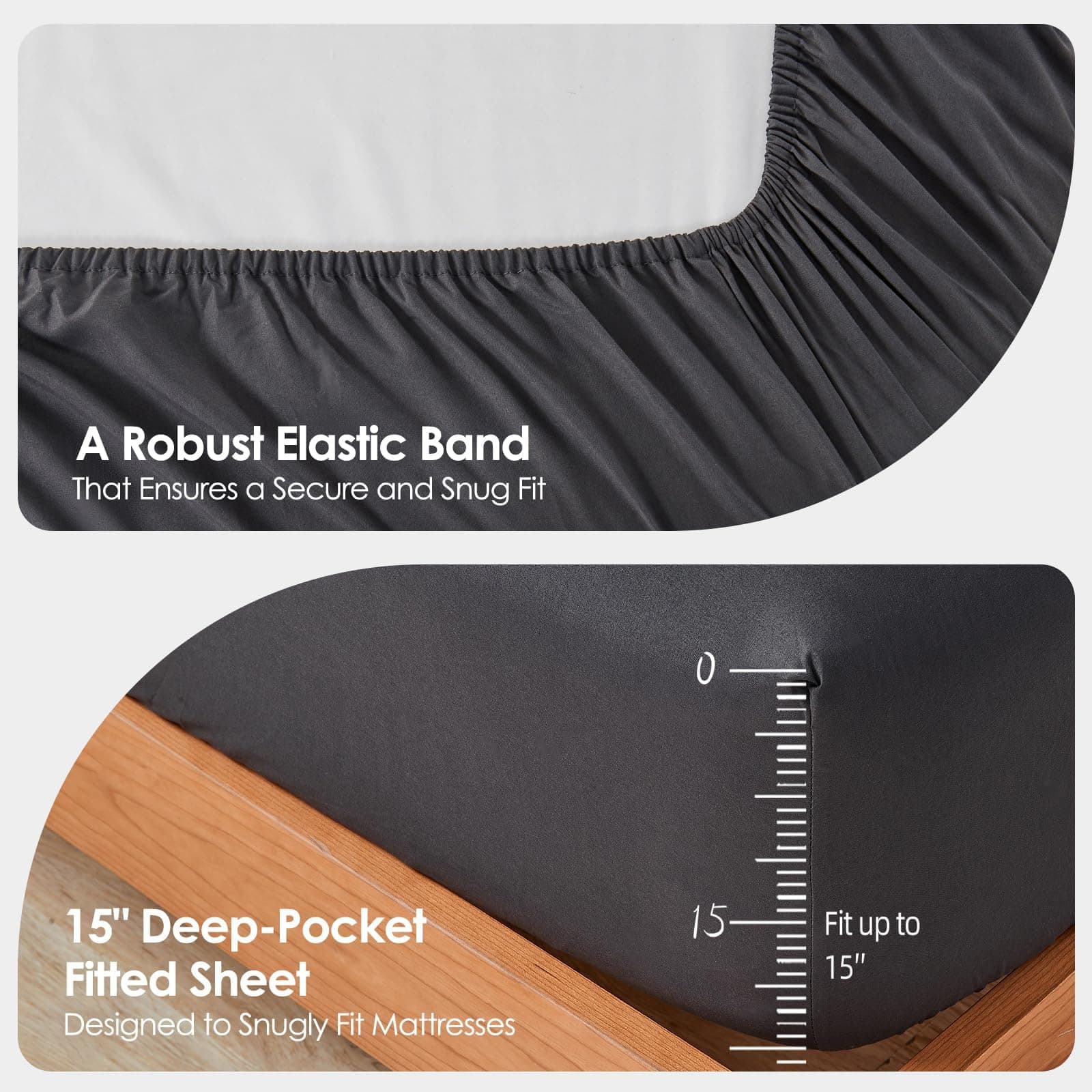 4. Lujo y Conveniencia: Nuestras sábanas de microfibra cepillada ofrecen un acabado suave y sin arrugas para una comodidad durante todo el año. Resistentes a la contracción, la decoloración y las bolitas, son fáciles de cuidar, simplemente lávelas a máquina y séquelas a baja temperatura. De secado rápido y con colores que no se desvanecen, brindan comodidad y elegancia duraderas.