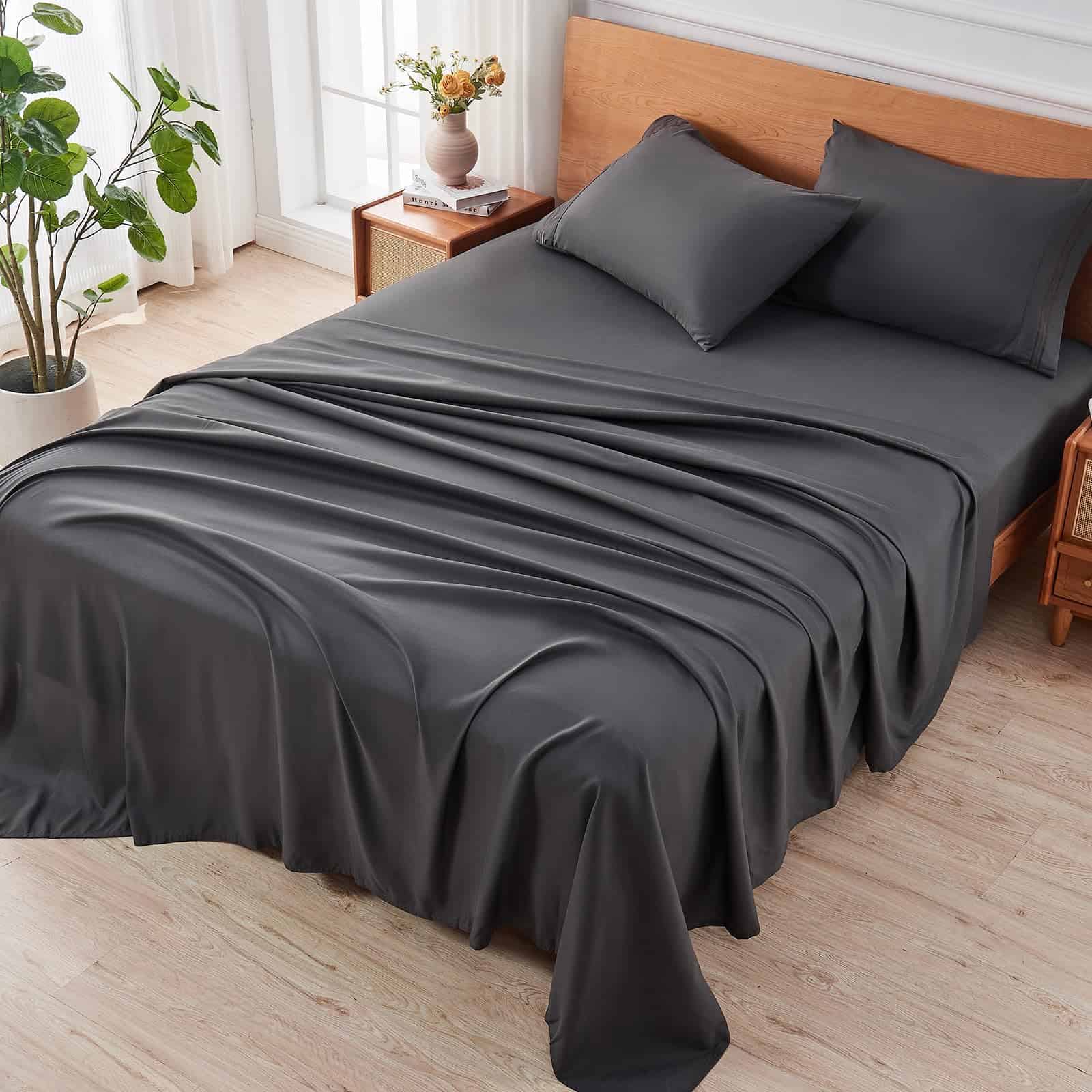 1. Diseño Pensado: El juego de sábanas y fundas de almohada de Cibhlea viene en varios colores sólidos y tamaños, lo que facilita transformar cualquier dormitorio en un santuario de sueño elegante. La sábana ajustable cuenta con una banda elástica alrededor de los bordes, asegurando un ajuste ceñido en su colchón. Descanse tranquilo, estas sábanas se mantendrán ajustadas y seguras en su lugar.