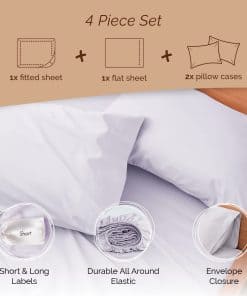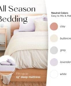 1. Juego de sábanas de lujo de algodón: nuestras sábanas Premium de alto hilo están hechas con algodón de fibra larga fino para una sensación suave, suave y fresca, similar al algodón egipcio. Estas sábanas de algodón percal transpirables son ideales para una buena noche de sueño. 2. Sábanas ajustadas etiquetadas: nuestras sábanas ajustables de bolsillo profundo pueden adaptarse a colchones de hasta 15 pulgadas de profundidad y vienen con etiquetas cortas y largas para una fácil referencia, por lo que cambiar las sábanas ahora es menos molestia. Acabado con un elástico alrededor para asegurar un agarre perfecto alrededor de su colchón. 3. Juego de sábanas ajustadas: nuestro juego de sábanas de algodón percal clásico incluye una sábana ajustable suave y crujiente, una sábana plana y dos fundas de almohada, cada funda de almohada tiene un cierre de sobre para proporcionar un ajuste perfecto. 4. Fácil cuidado: nuestras sábanas que absorben la humedad son resistentes a la decoloración, las manchas y el encogimiento. Estas sábanas transpirables de acabado opaco son aptas para lavar a máquina en agua fría o tibia. Secar en secadora o planchar a baja temperatura, evitar lejía y, para minimizar arrugas, doblar o extender justo después de que termine el ciclo de secado. 5. Sobre nosotros: los productos de Five Looms se fabrican con materias primas cuidadosamente seleccionadas para garantizar que nuestros valores de fabricación ética y sostenibilidad para nuestro planeta nunca se vean comprometidos. Nuestras sábanas suaves y crujientes se fabrican bajo altos estándares de calidad.