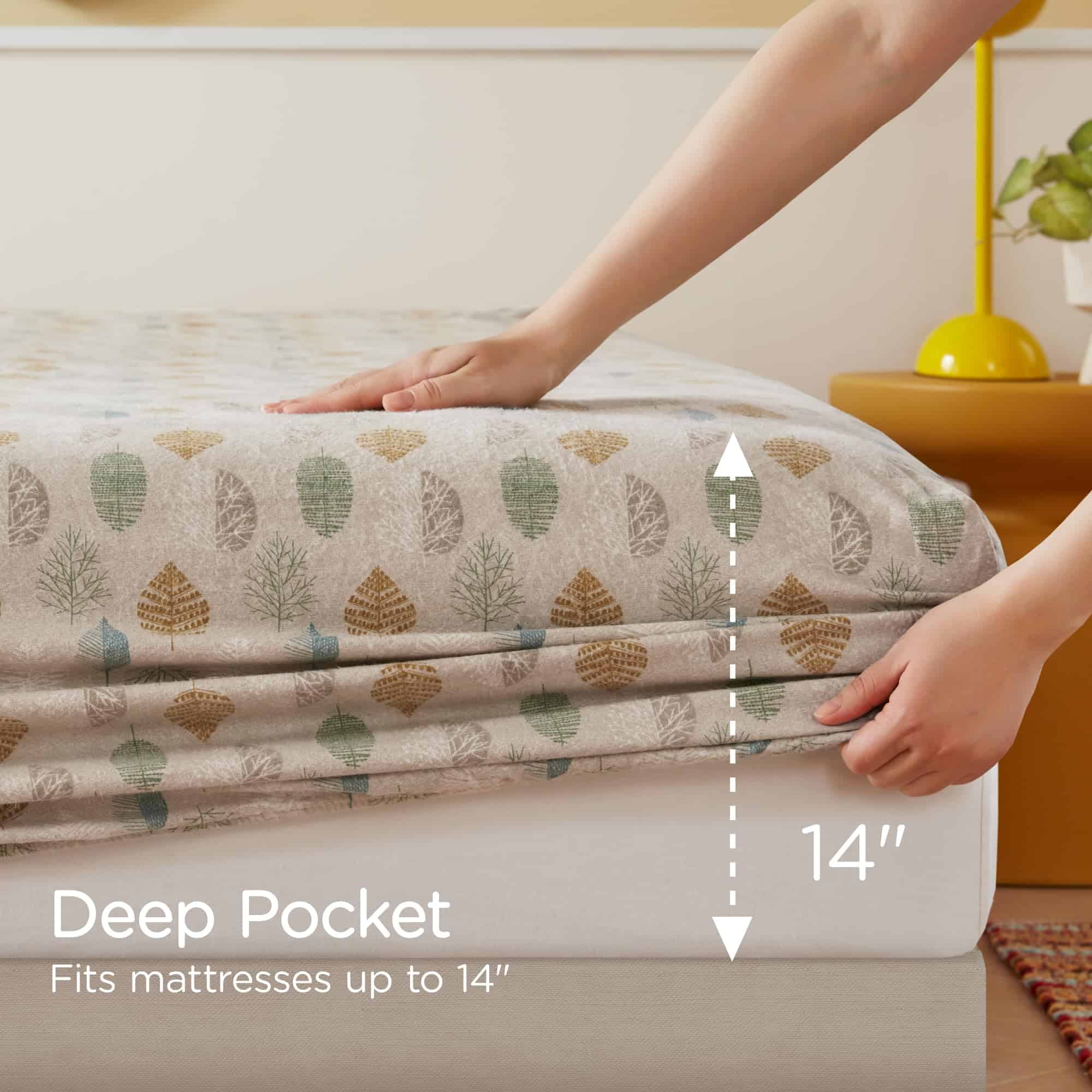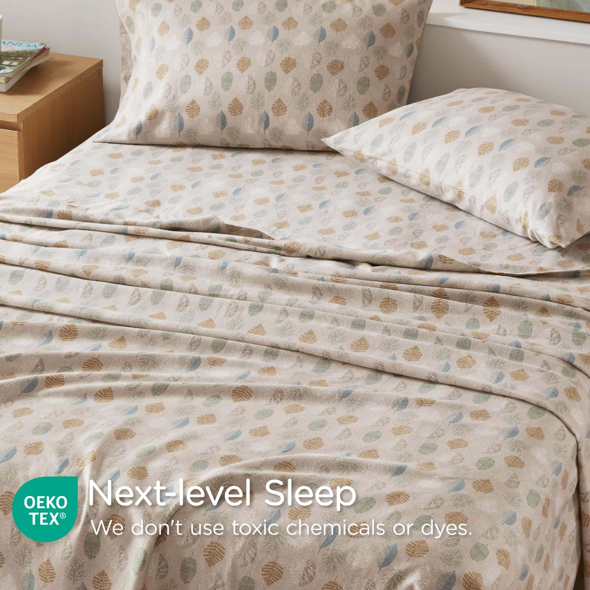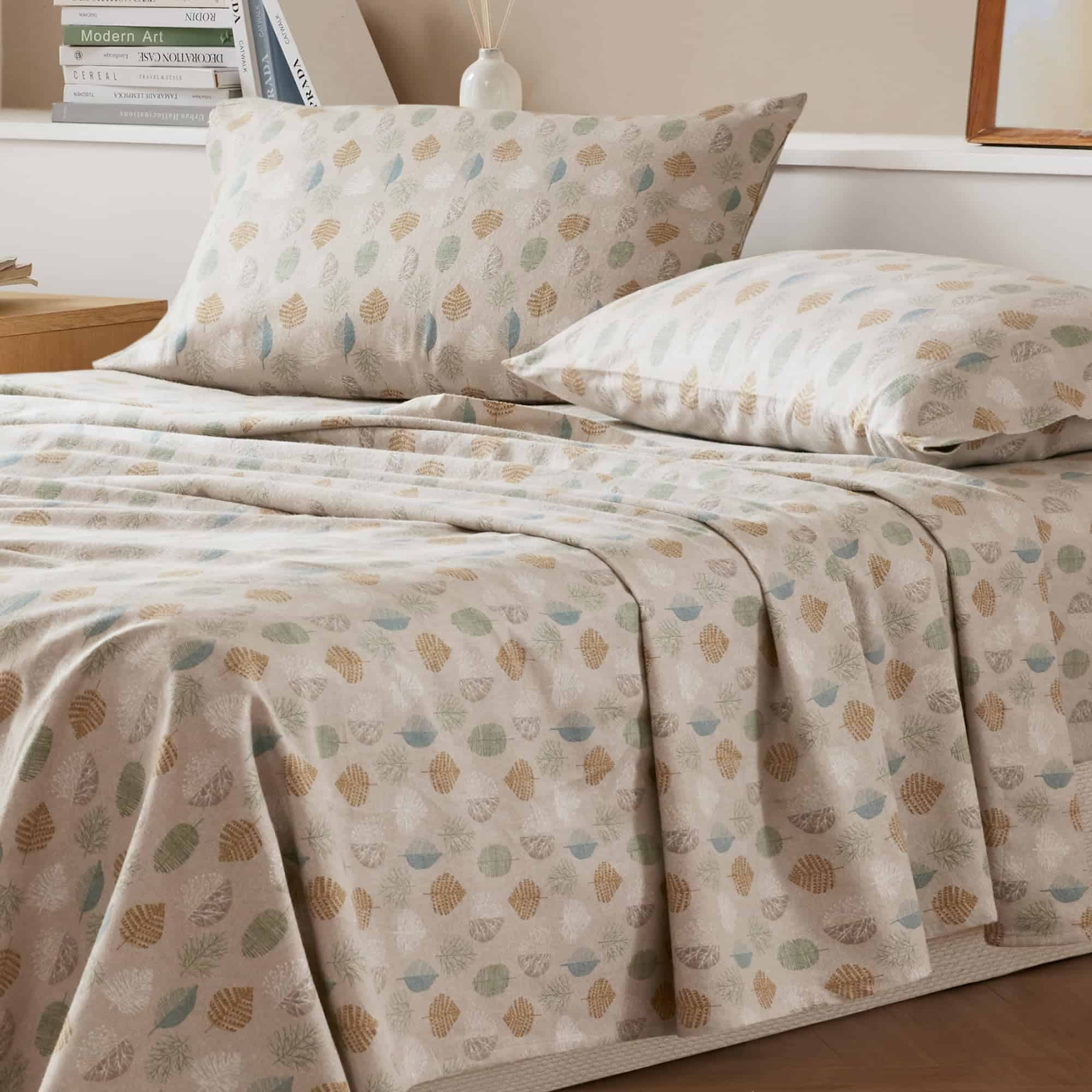 Juego de sábanas king size de franela Codi de 4 piezas, ideal para el invierno. Hechas de 100% algodón, estas sábanas ofrecen la máxima suavidad y calidez para garantizar un sueño cómodo y relajante. Con diseños temáticos de otoño en colores suaves, estas sábanas son perfectas para añadir un toque acogedor a tu dormitorio. Las sábanas de franela están cuidadosamente cepilladas en ambos lados para proporcionar mayor calidez y comodidad durante las noches frías. El juego incluye una sábana plana king size, una sábana ajustada y dos fundas de almohada con un bolsillo profundo de 14 pulgadas para adaptarse a la mayoría de los colchones. La sábana ajustada se ajusta perfectamente y no se moverá en las esquinas, lo que garantiza una cama suave y sin arrugas. Este juego de sábanas de franela ha sido certificado por Oeko-Tex 100 para garantizar la seguridad y la calidad del producto. Es una excelente opción para aquellos con alergias. Consejos de cuidado: Lavar a máquina en agua fría y secar a baja temperatura. Evitar usar lejía y no es necesario planchar. Al no tener etiquetas incómodas, los juegos de sábanas de franela de Codi garantizan un sueño reparador y confortable. Disfruta de todas las ventajas de las sábanas de franela de alta calidad con este juego completo con bolsa de almacenamiento.