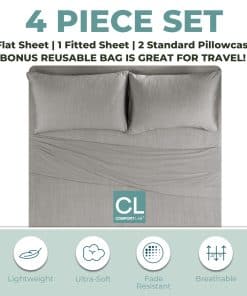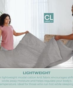 Presentamos el Juego de Funda Nórdica Comfort Lab Modal Jersey, la cúspide del lujo y el confort para todas las medidas de cama. Hecho con una mezcla premium de modal y algodón, nuestro juego de funda nórdica proporciona una suavidad superior y transpirabilidad, asegurando una agradable experiencia de sueño durante todo el año. JUEGO DE SÁBANAS COMPLETO: Cada juego incluye 1 sábana bajera, 1 sábana encimera y 2 fundas de almohada, proporcionando un ajuste perfecto para el tamaño de tu cama. Ya sea King, Queen, Doble, Twin o Twin XL, nuestros juegos de sábanas están diseñados para satisfacer tus necesidades. Empaquetados de forma ordenada en una bolsa de tela, nuestros juegos de sábanas ofrecen comodidad y organización. CALIDAD PREMIUM y CONFORT ÚLTIMO – Hechas con una mezcla de modal y algodón, nuestras sábanas de modal jersey ofrecen una suavidad inigualable, transpirabilidad y propiedades de absorción de humedad. Experimenta la comodidad similar a tu camiseta favorita muy usada, mientras disfrutas de un efecto refrescante en clima cálido y calor durante las estaciones más frías. ELECCIÓN DE REGALO IDEAL – Con un confort excepcional y una apariencia lujosa, nuestras sábanas de modal jersey son un regalo perfecto para cualquier ocasión. Adecuadas para todas las edades y estilos de dormitorio, añaden un toque elegante a cualquier espacio. PRODUCTO VERSÁTIL PARA TODAS LAS ESTACIONES – Diseñadas para satisfacer todas las estaciones, nuestras sábanas brindan comodidad y relajación consistentes durante todo el año. El jersey elástico se ajusta perfectamente, se adapta a colchones de diferentes profundidades, proporcionando una superficie de descanso segura y confortable. DETALLES ESTILOSOS y FÁCIL CUIDADO – Con detalles festoneados, nuestros juegos de ropa de cama añaden un toque contemporáneo mientras refuerzan la durabilidad para un uso a largo plazo. Lavables a máquina y fáciles de cuidar, nuestras sábanas de modal jersey conservan su suavidad, color y calidad lavado tras lavado. Disponibles en una variedad de colores sofisticados, incluyendo rosa blush, carbón, eucalipto, azul claro, gris claro, azul marino, marrón claro, teal y blanco, nuestros juegos de sábanas de modal jersey complementan sin esfuerzo cualquier decoración de dormitorio, elevando tu santuario de descanso a nuevas alturas de confort y estilo. Descubre el lujo definitivo con el Juego de Funda Nórdica Comfort Lab Modal Jersey y transforma tu experiencia de sueño hoy.
