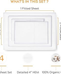 3. DESCANSE Y RECARGUE CON ROPA DE CAMA SOSTENIBLE – Nuestras sábanas de algodón orgánico son súper suaves para su piel. La falta de sustancias abrasivas garantiza una maravillosa noche de sueño para aquellos con piel sensible. Diseñadas cuidadosamente para una experiencia de sueño tranquila, nuestras sábanas son excelentes tanto para niños como para adultos.